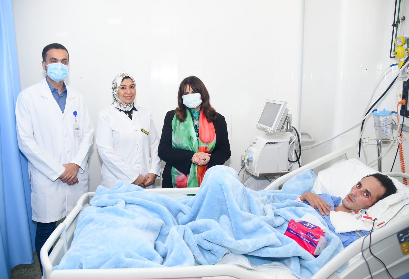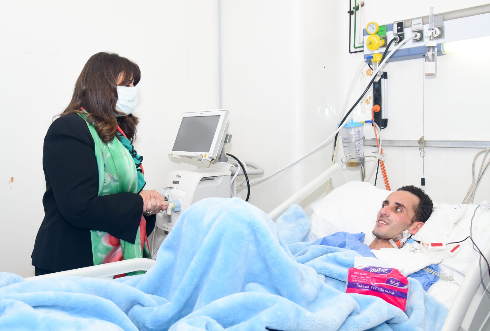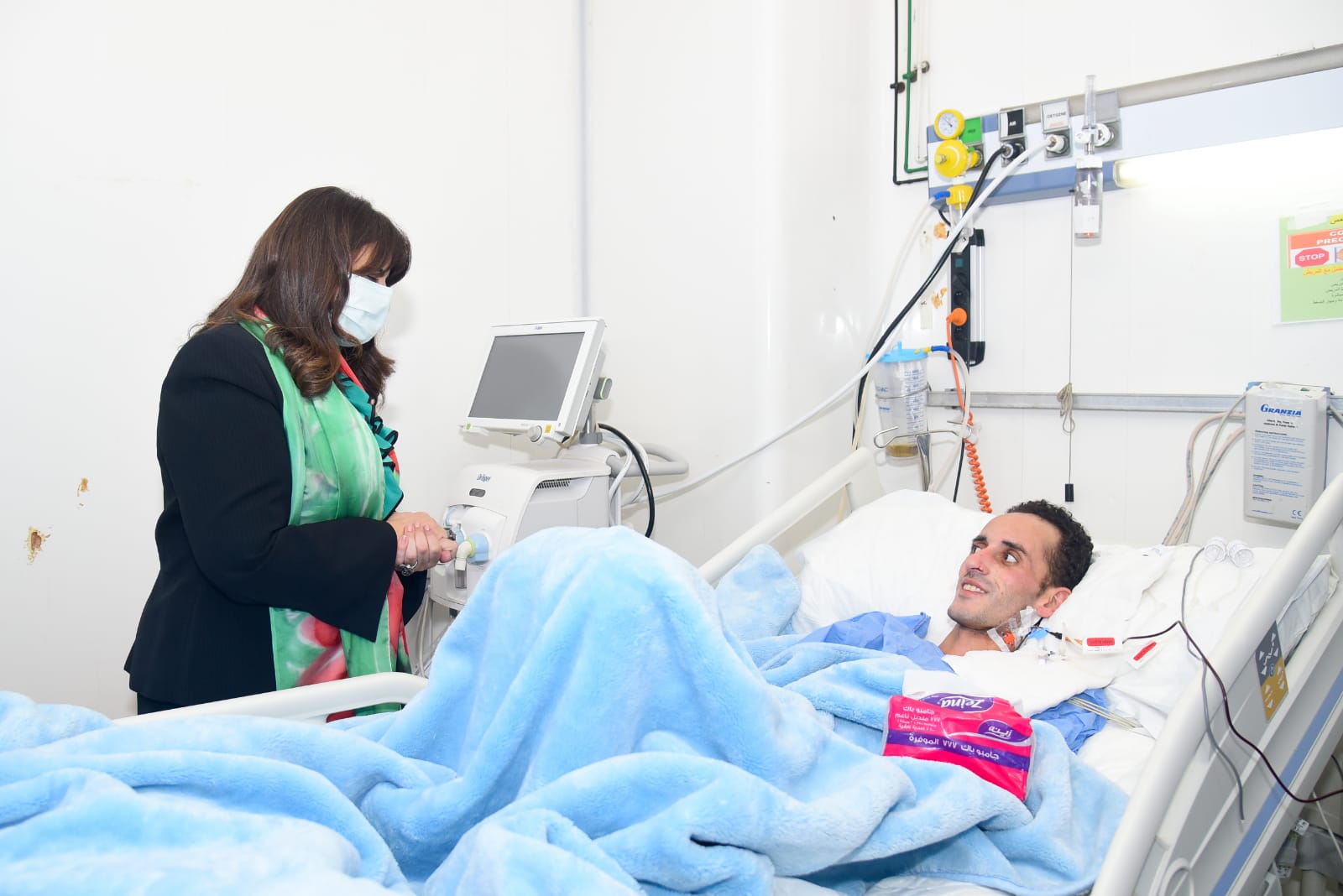 وزيرة الهجرة تزور أحمد حسين بمستشفى دار الشفاء للاطمئنان على حالته | صور