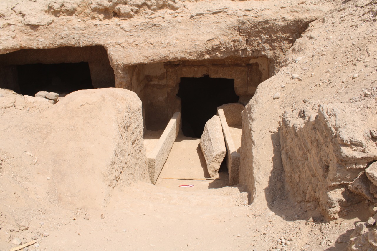 ومن جانبه أكد محمد عبد البديع رئيس الإدارة المركزية لآثار مصر العليا أن المقبرة المكتشفة منحوتة في التل الأثري ويتم الوصول إليها عن طريق سلم هابط يتقدمه فناء ربما كان مشيدا من الطوب اللبن، وذلك لوجود بقايا جدار طوب لبن أعلى السلم على يمين الداخل إلى المقبرة.