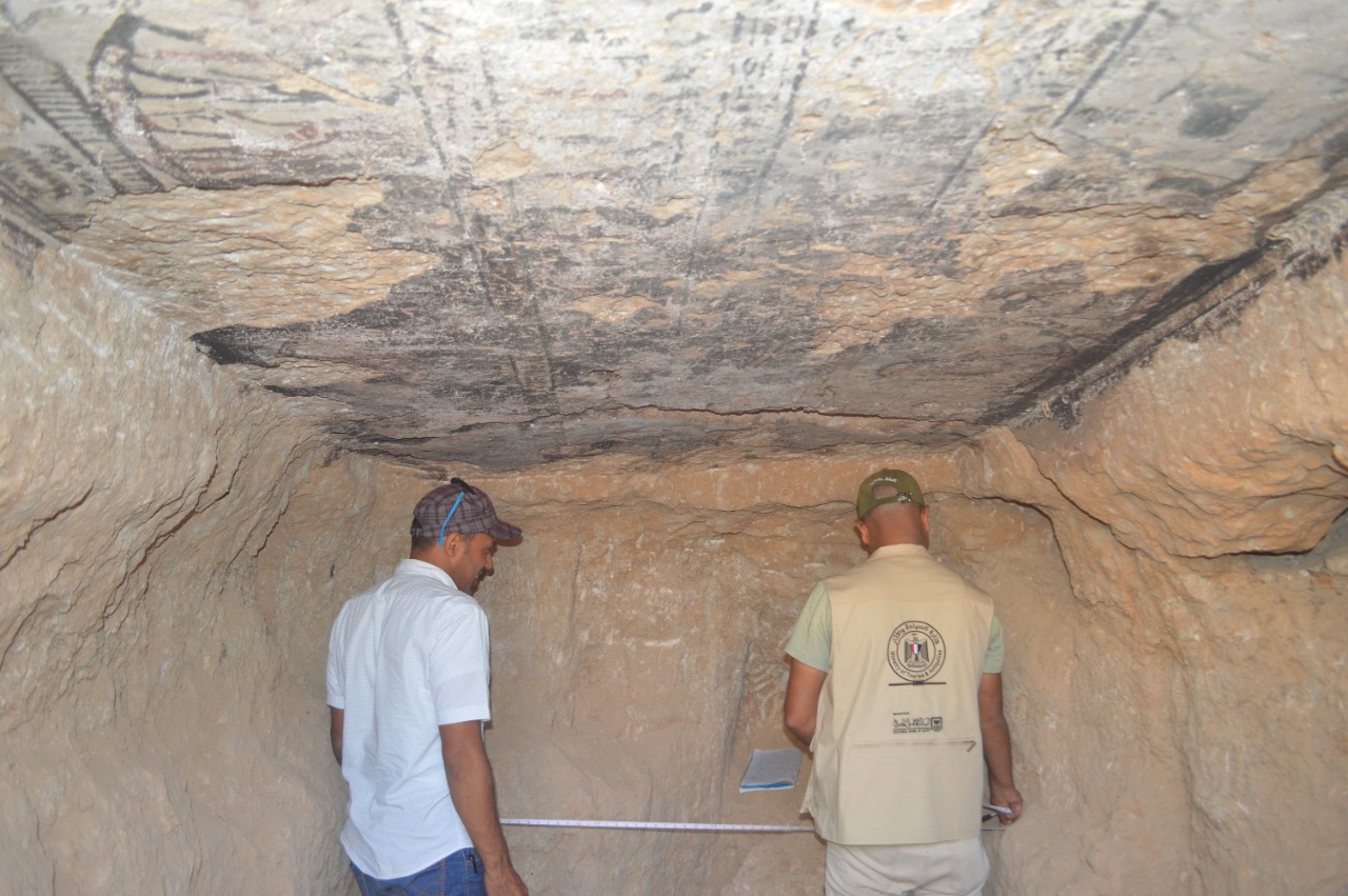 وأشار إلى أنه من المقرر أن يتم خلال الفترة القادمة أعمال تنظيف وترميم للسقف لدراسة تلك المناظر والكتابات لمعرفة صاحب هذه المقبرة والذي ربما كان من كبار الموظفين في العصر البطلمي وهو ما يشير إليه موقع المقبرة الهام وكذلك وجود تاج الجنوب وتاج الشمال وبقايا المناظر والكتابات الهيروغليفية الموجودة بالمقبرة وبقايا الفخار والحيوانات المحنطة.