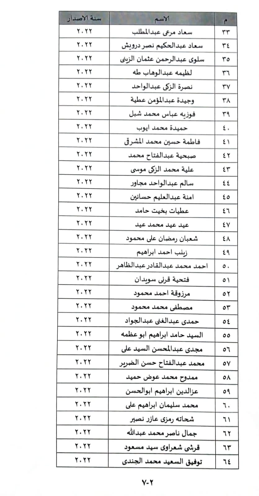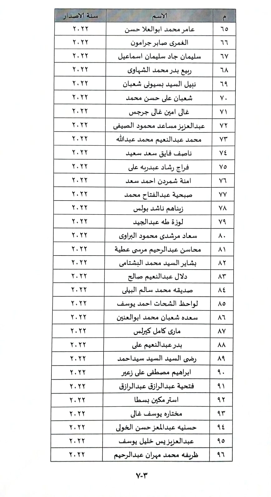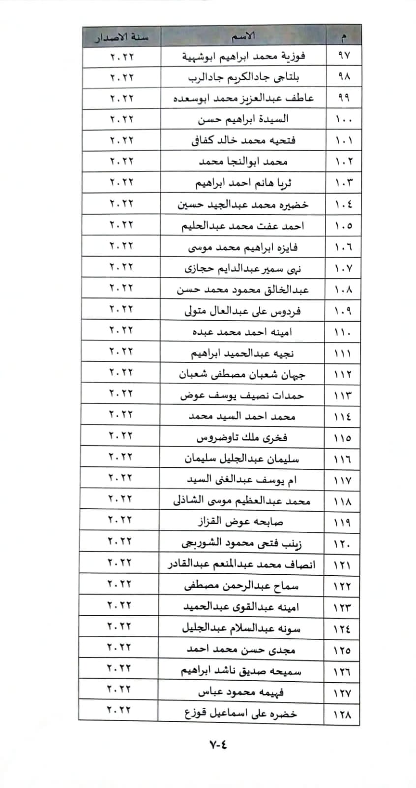 وضمت قائمة الأسماء أيضا:حميدة محمد ايوب، فاطمة حسين محمد المشرقى، صبحية عبدالفتاح محمد، علية محمد الزكى موسى، سالم عبدالواحد مجاور، امنة عبدالعليم حسانين، عطيات بخيت حامد، عيد عيد محمد عيد، شعبان رمضان على محمود، زينب احمد ابراهيم ، احمد محمد عبد القادرعبد الظاهر،فتحية قرنى سويدان، مرزوقة احمد محمود، مصطفى محمد محمود، حمدى عبدالغنى عبدالجواد، السيد حامد ابراهيم ابو عظمه، مجدى عبدالمحسن السيد على ، محمد عبدالفتاح حسن الضرير، ممدوح محمد عوض حميد ، عزالدين ابراهيم ابو الحسن ، محمد سليمان ابراهيم على ، شحاته رمزى عازر نصير، جمال ناصر محمد عبدالله، قرشى شعراوى سيد مسعود، توفيق السعيد محمد الجندى، عامر محمد ابوالعلا حسن، الغمرى صابر جرامون، سليمان جاد سليمان اسماعيل، ربيع بدر محمد الشهاوى، نبيل السيد بسيونى شعبان.