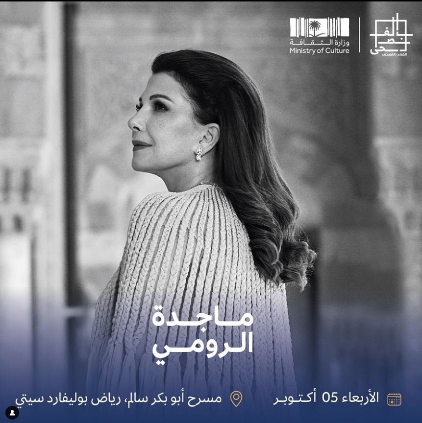 وكانت قد روحت ماجدة الرومي، للحفل عبر حسابها الشخصي بموقع التوينات القصيرة “تويتر”، وشاركت متابعيها صورة استقبالها في المملكة العربية السعودية، وعلقت عليه قائلة: صباح الخير من رياض الخير، شكرا لحفاوة الاستقبال، وبكل المحبة والود لنا لقاء، الأربعاء 5 أكتوبر 2022.