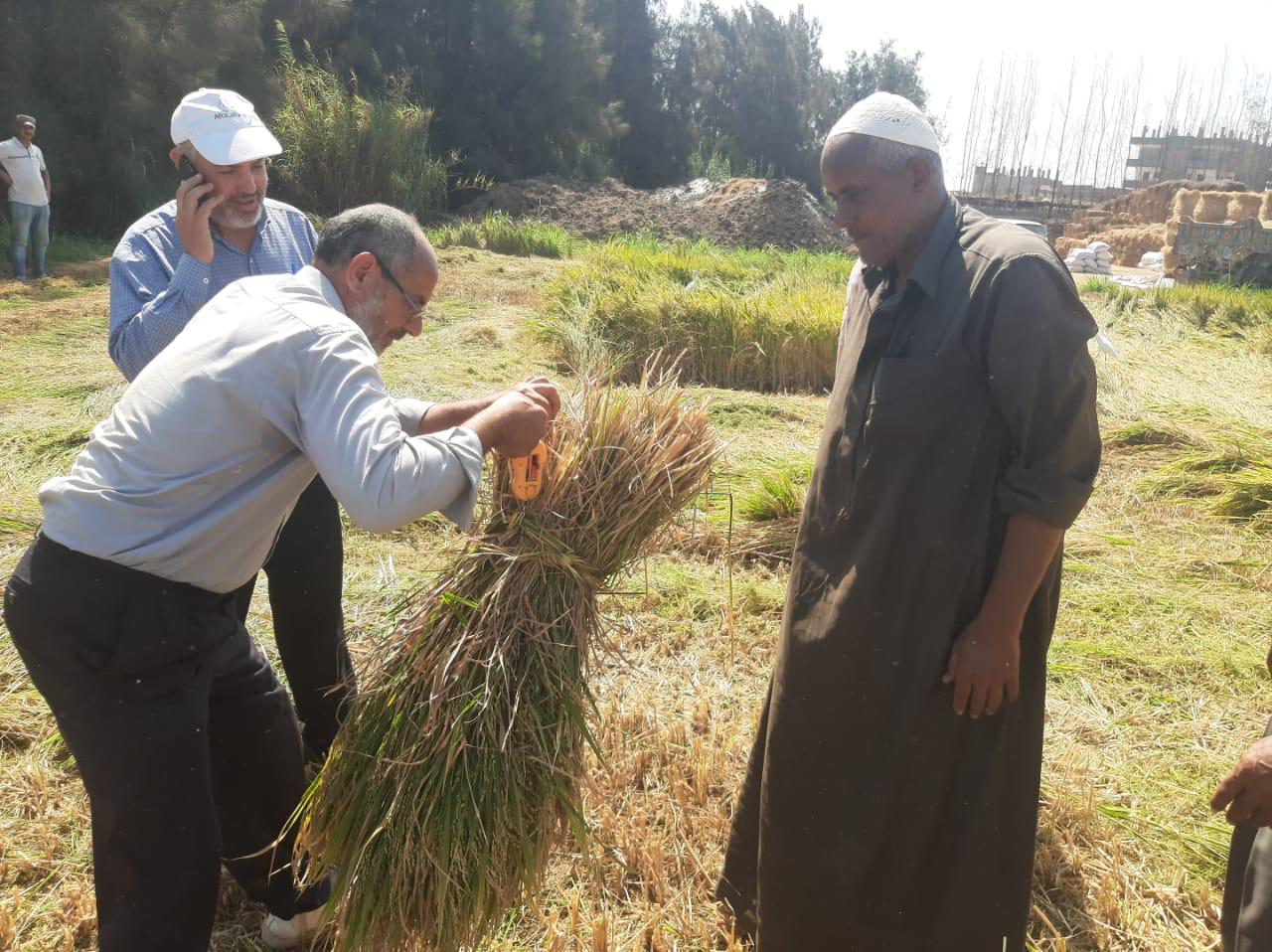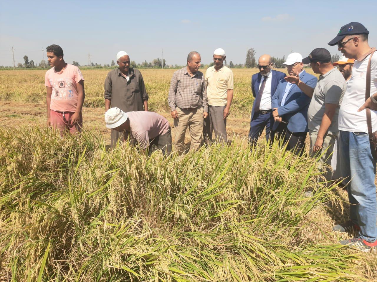 في يوم حصاد الأرز.. وفد من أكاديمية البحث العلمي يزور الحقول الإرشادية