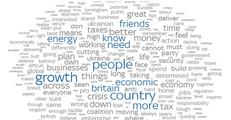 وكانت أكثر 3 كلمات استخدمتها ليز تراس هي: النمو، وبريطانيا، والشعب، وربما لم يكن مفاجئًا التركيز على هذه الكلمات في الخطاب إذ ركزت فيه تراس على خططها الاقتصادية.