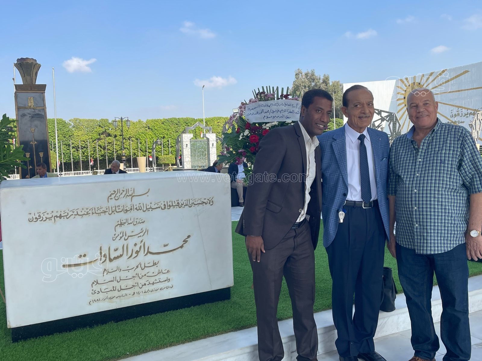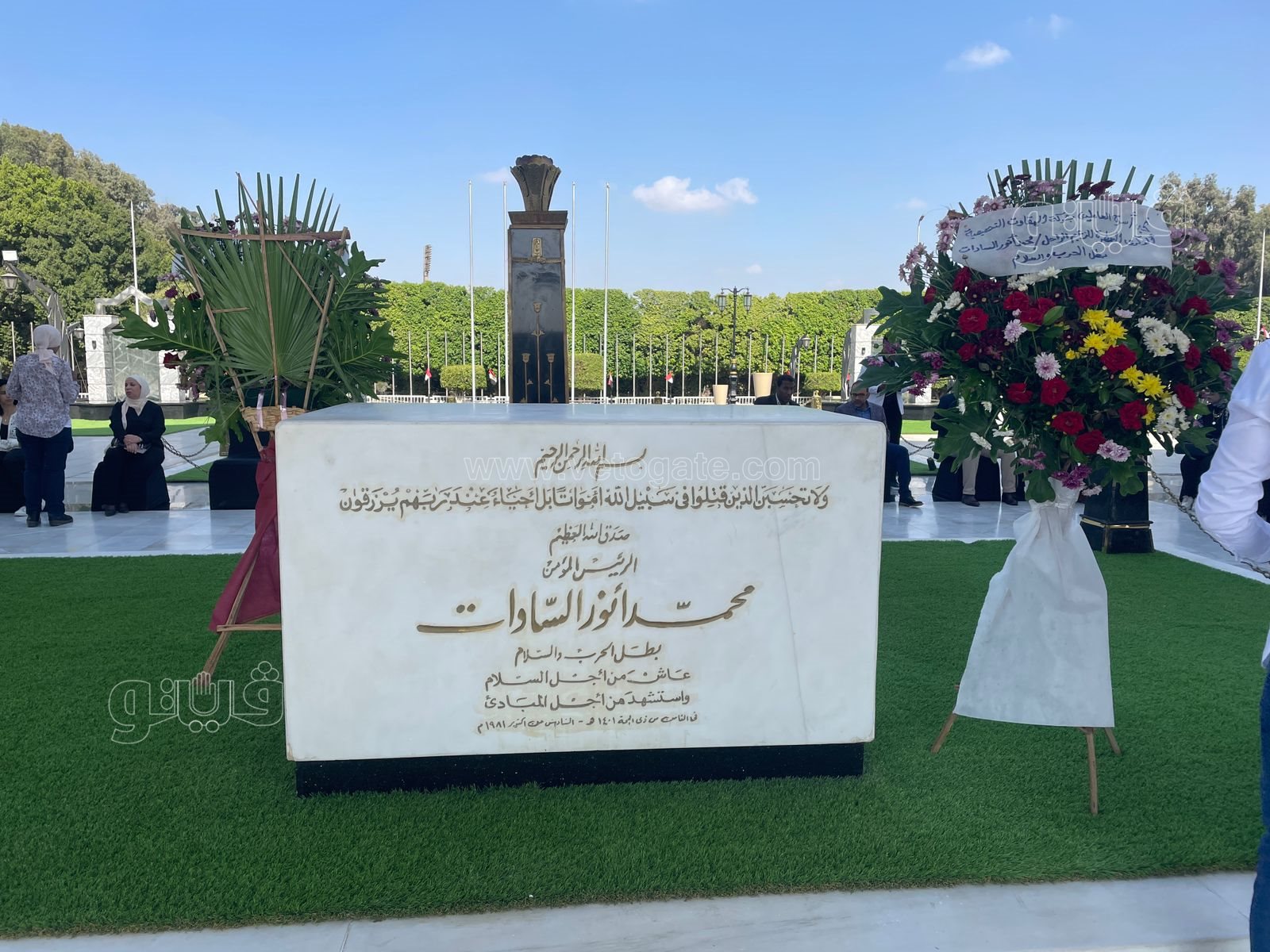 ووضع الرئيس إكليلا من الزهور على قبر الرئيس الراحل محمد أنور السادات وقراءة الفاتحة ترحما على روحه الطاهرة ومصافحة عدد من أفراد أسرته، كما صافح عددًا من كبار قادة القوات المسلحة وكبار رجال الدولة.