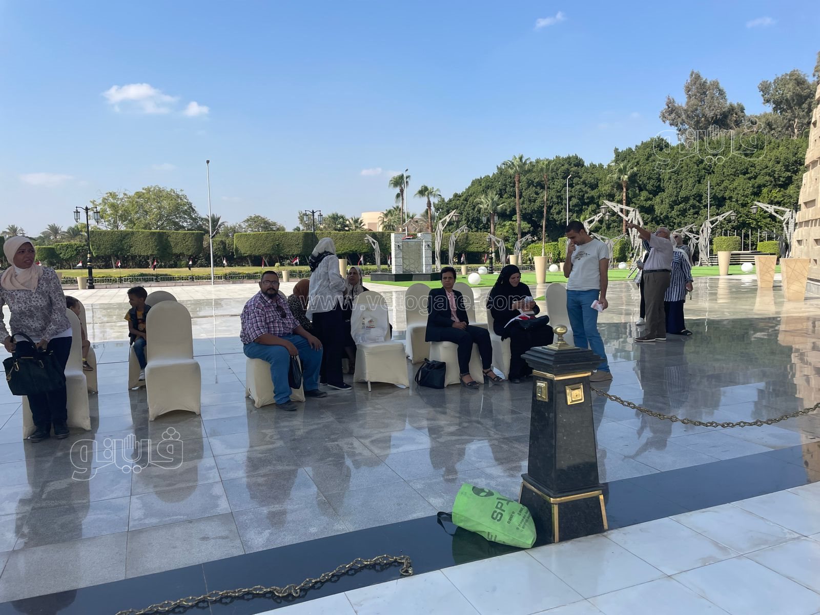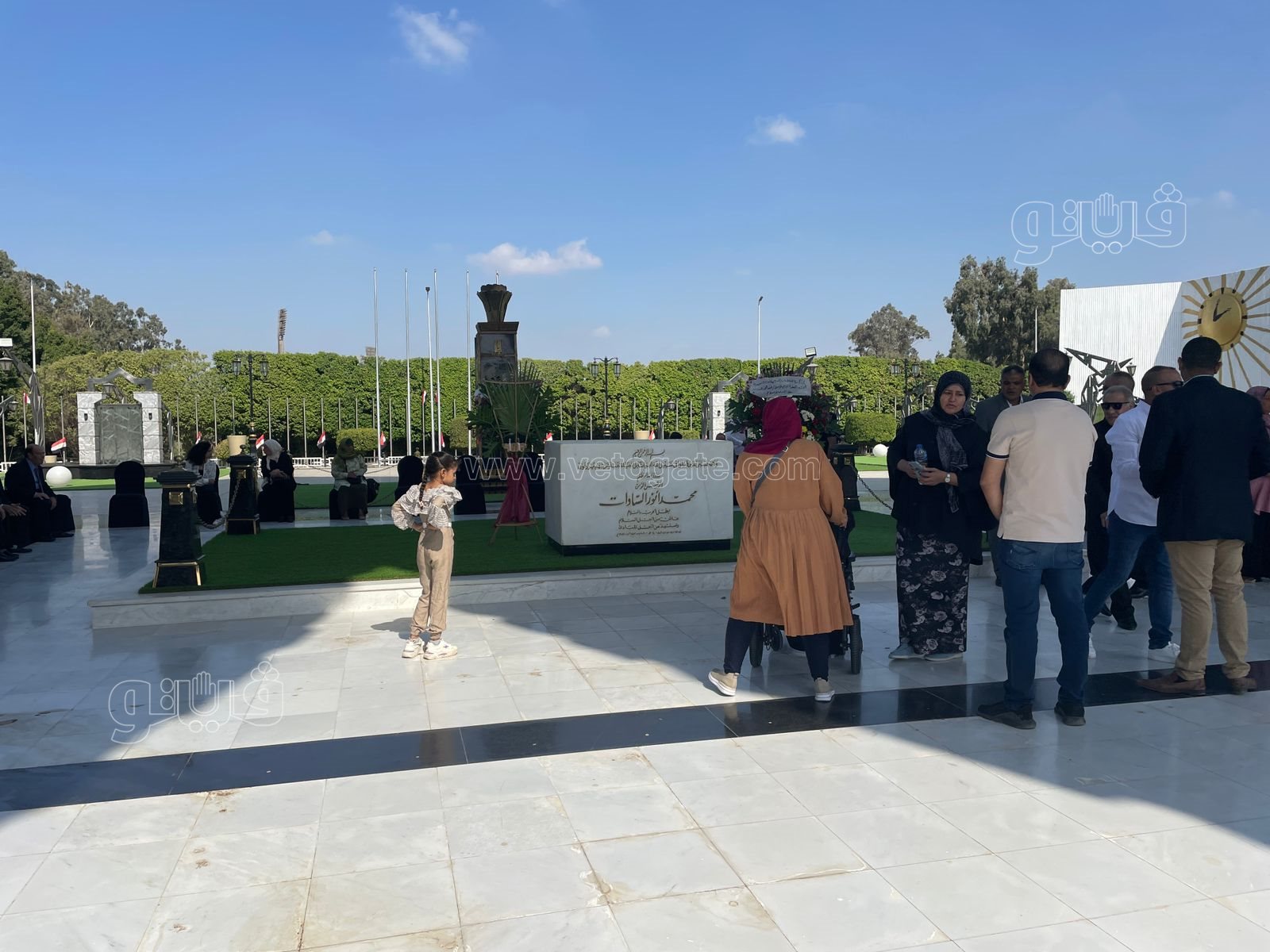توافد المواطنين على المنصة بصور السادات وزوجته لإحياء ذكرى 6 أكتوبر | صور