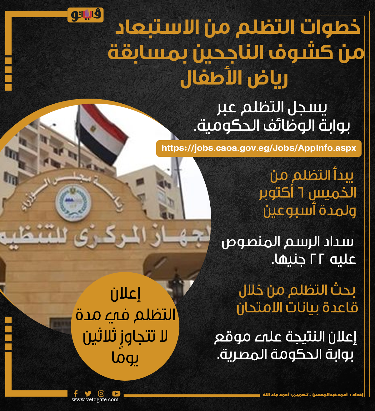 خطوات تظلم المستبعدين من كشوف الناجحين بمسابقة رياض الأطفال| إنفوجراف الجمعة 07/أكتوبر/2022 - 01:32 م 10/7/2022 1:32:29 PM بوابة الوظائف الحكومية أحمد عبدالمحسن شارك طباعة 18 حجم الخط شارك طباعة اعلان النتيجة الحكومة المصرية بوابة الوظائف الحكومية قاعدة بيانات موقع بوابة الحكومة المصرية وظائف خطوات التظلم