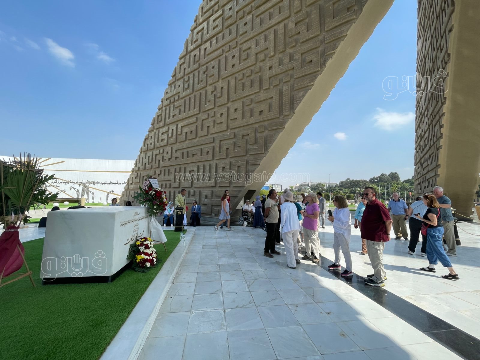 كما توافد المواطنون للاحتفال بذكرى حرب ٦ أكتوبر أمام قبر جيهان السادات زوجة الرئيس الراحل، وقبر الجندي المجهول.