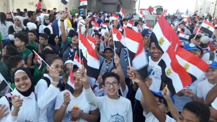 وخرجت الماراثونات الرياضية تحمل الإعلام المصرية على كورنيش البحر مرددين هتافات: تحيا مصر ومصر أم الدنيا ،تسلم يا جيش بلادي.