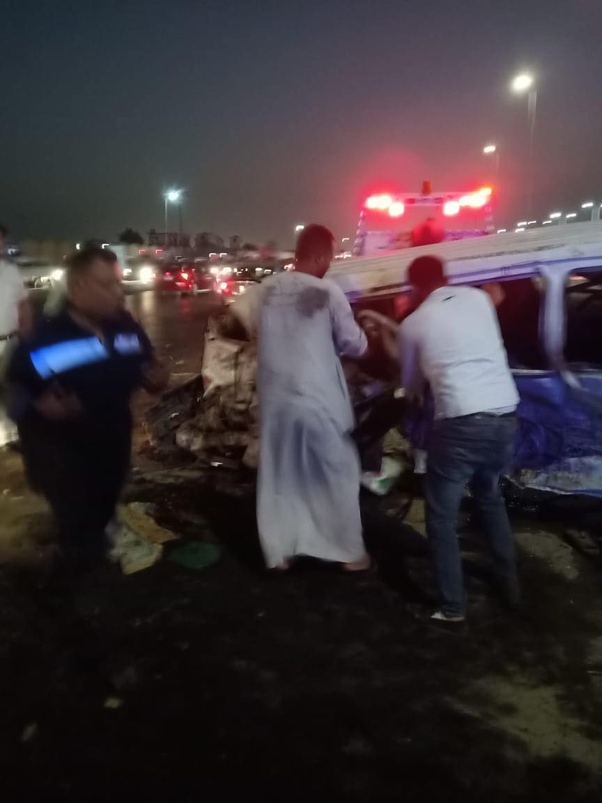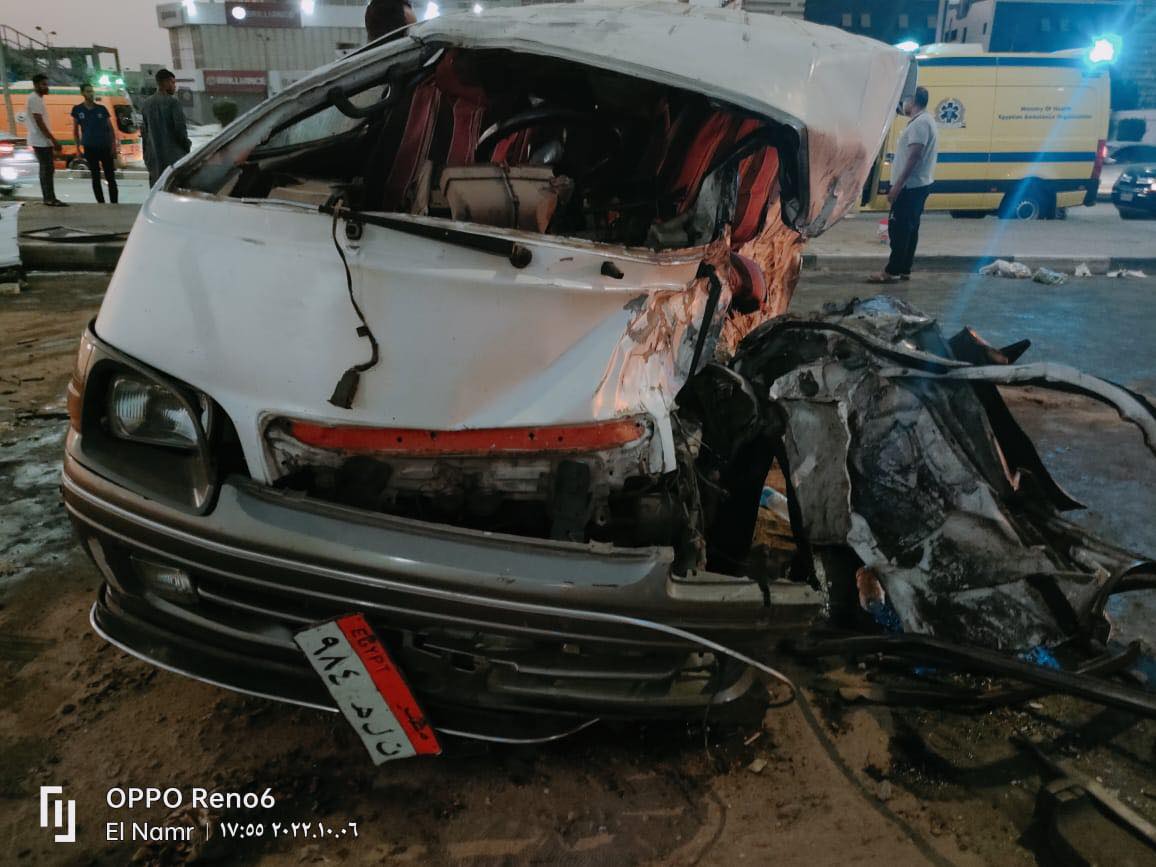 تلقي مدير امن القليوبية اخطارا بوقوع حادث تصادم علي طريق مصر اسماعيلية انتقل رجال مرور وتبين تصادم سيارتين ميكروباص معملاكي