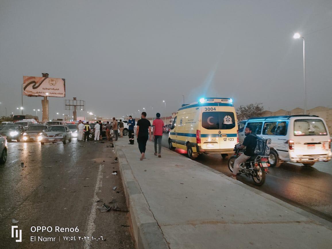 وتم الدفع بـ 7 سيارات اسعاف وتبين اصابة 13 شخصا تم نقلهم لمستشفي السلام وتحرر محضر بالواقعة وتولت النيابة التحقيق.