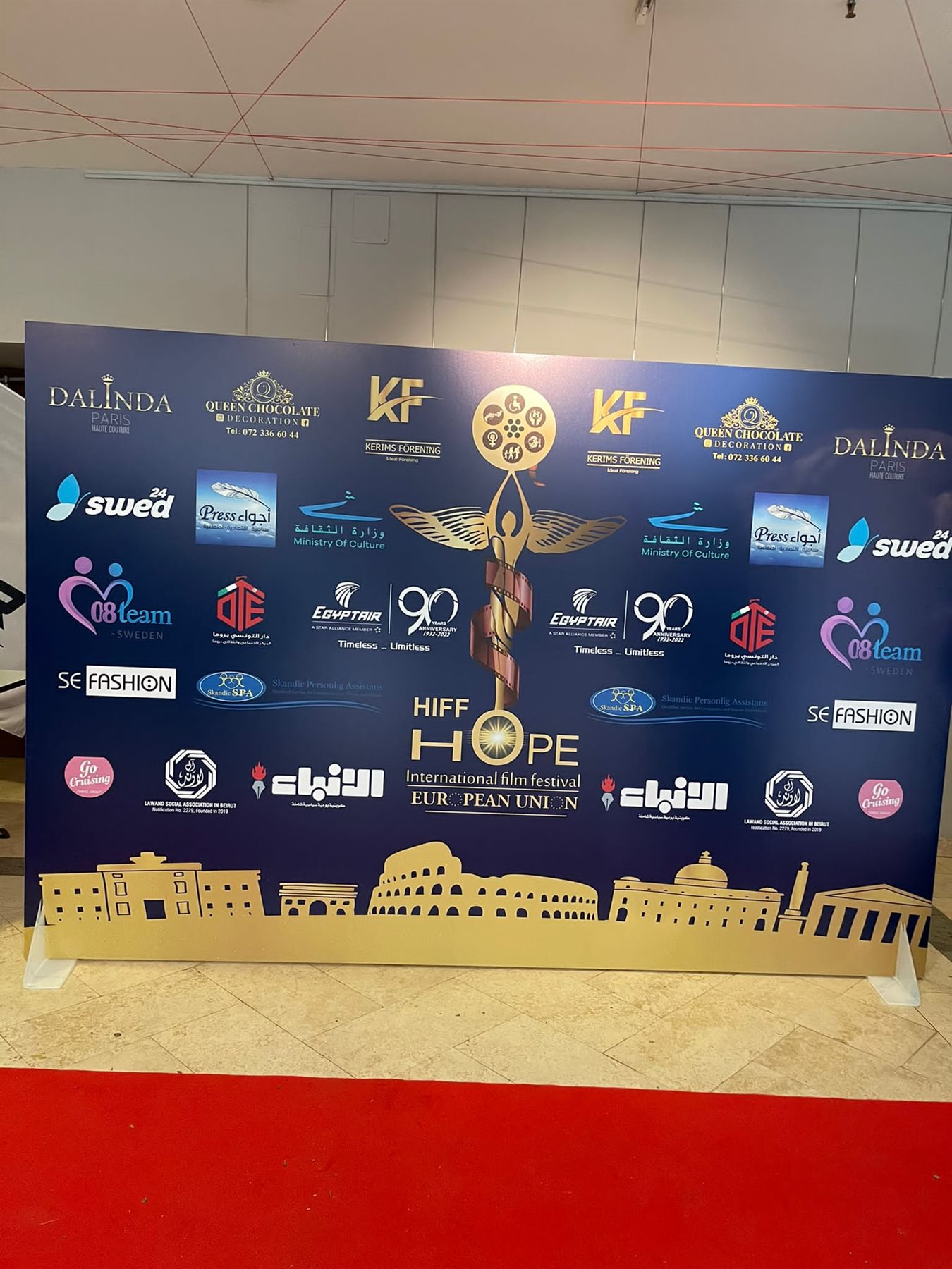 شاركت الشركة الوطنية مصر للطيران كناقل رسمي لمهرجان الأمل السينمائي الدولي بالاتحاد الأوروبي لذوي الهمم في دورته الثانية بالعاصمة الإيطالية روما في الفترة من ٢٧سبتمبر حتى ٥ أكتوبر ٢٠٢٢ برئاسة فادي اللوند مؤسس المهرجان.