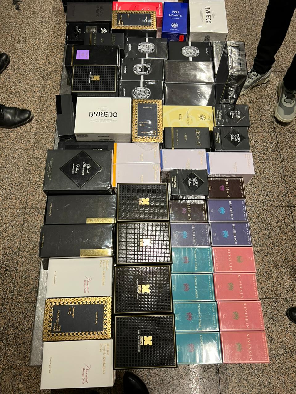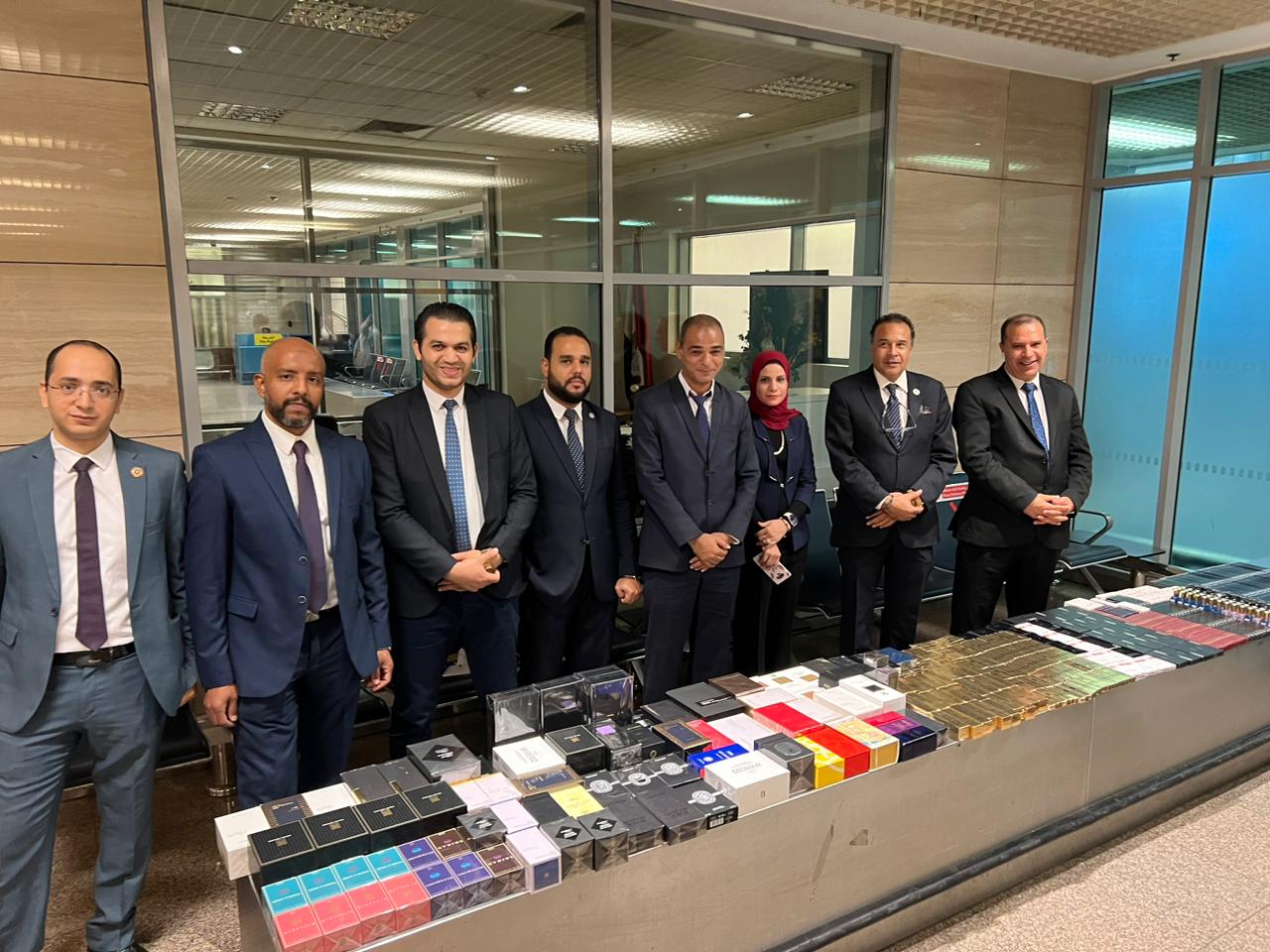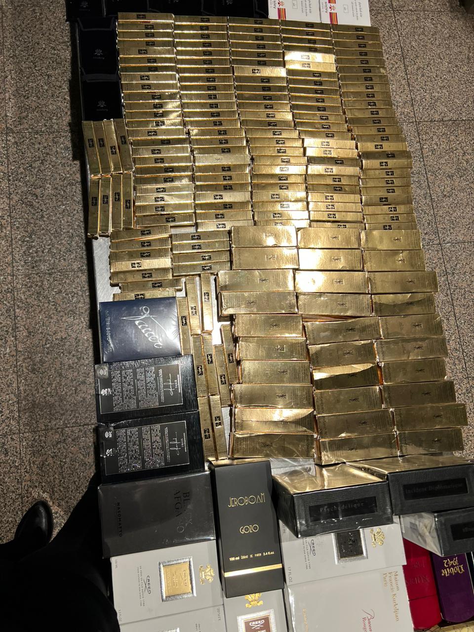 وبالعرض علي احمد فؤاد الدلهماوي مدير الإدارة بالانابة قام بتشكيل لجنة مكونة من أحمد عطا الله وحسن مختار وطالسيد موسي وفاطمه عبده واحمد مرسي وشريف عيد مأمير الجمرك تحت اشراف احمد فتحي مدير الحركة بجرد وعد وتصنيف وتحريز المضبوطات والتي بلغت ٧٧٢ عبوة مستحضرات التجميل والعطور غالية الثمن.