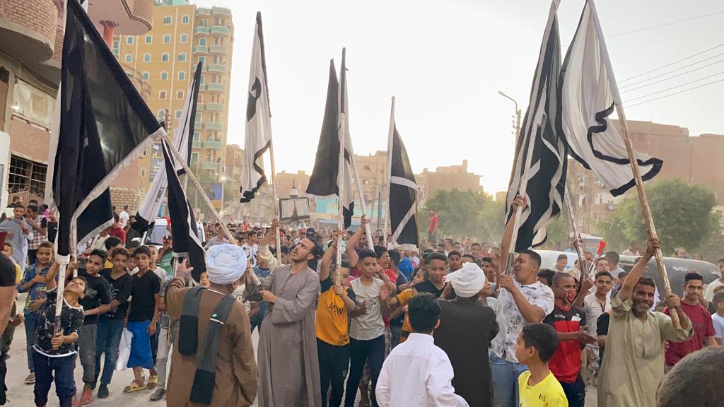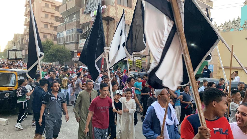 احتفل أهالي محافظة المنيا، مساء اليوم الجمعة، بالمولد النبوى الشريف، حيث خرج الأهالي بالجمال والطبول والإشارات الموجودة أعلى جبه الوجه مدون عليها لا إله إلا الله محمد رسول الله، وسط حالة كبيرة من التفاعل التي سادت شوارع المنيا.