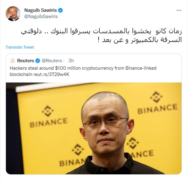 وقال المؤسس المشارك في شركة بينانس، تشانجبنج تشاو، على تويتر أمس الجمعة: "حدث استغلال لجسر بين سلاسل البلوك تشين وتمكنا من احتواء المشكلة الآن".
