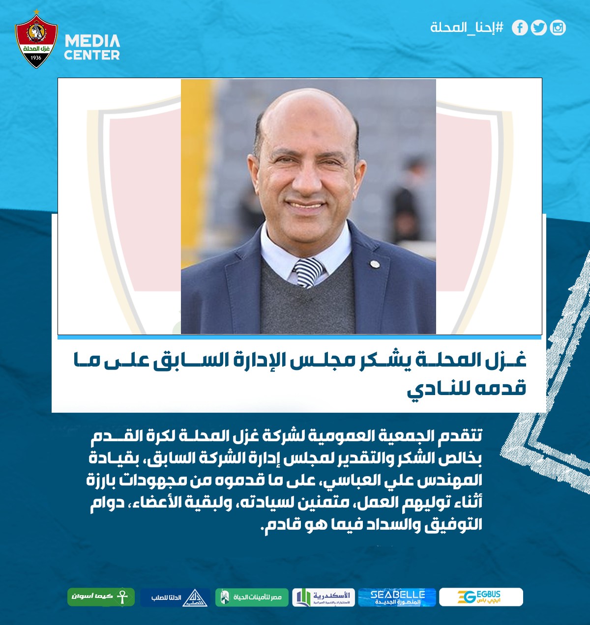 وتمنت عمومية شركة غزل المحلة التوفيق لمجلس العباسي فيما هو قادم من خلال بيان رسمي نشر علي صفحة النادي.