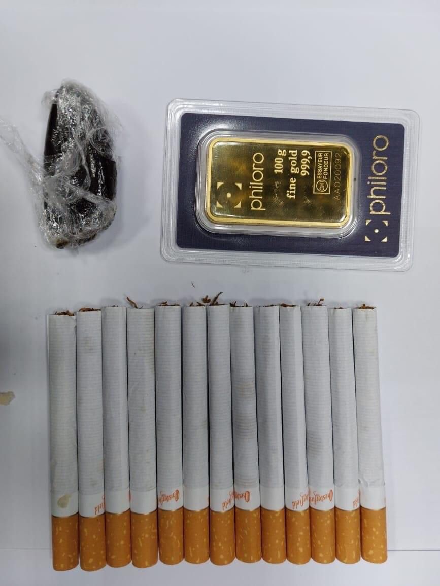 وأضافت المصادر أنه بتمرير حقائب الراكب على جهاز الفحص بأشعة «X-RAY» بمعرفة محمد كمال مأمور الفحص، تحت إشراف محمد صبحي رئيس قسم الفحص فتلاحظ وجود أشياء تكرارية، وبالعرض على مهند سامي نائب مدير الإدارة، قرر تكليف محمود خميس مامور الجمرك، لتفتيش حقائب الراكب فتبين وجود 13 سيجارة بها مخدر المريجوانا وقطعة حشيش وسبيكة ذهبية مخبأة في ملابسه الشخصية.