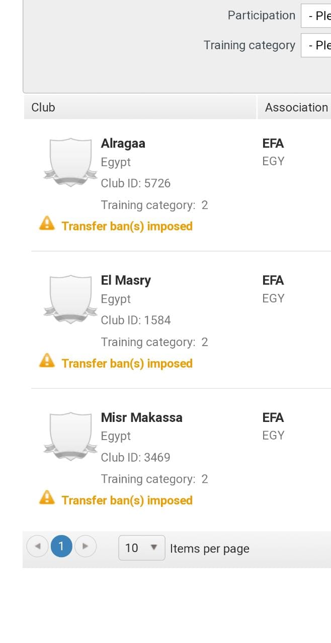 - يُمنع المصرى من تسجيل أي لاعبين جدد لمدة ثلاث فترات تسجيل كاملة ومتتالية سواء على المستوى الوطني أو الدولي حتى يتم دفع المبلغ المستحق.