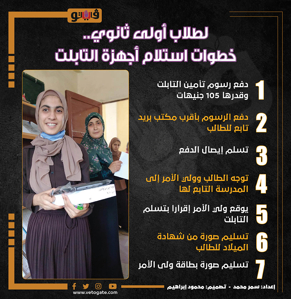 لطلاب أولى ثانوي.. خطوات استلام أجهزة التابلت | انفوجراف السبت 08/أكتوبر/2022 - 03:09 م 10/8/2022 3:09:06 PM تابلت المرحلة الثانوية سمر محمد شارك طباعة 18 حجم الخط شارك طباعة أجهزة التابلت الصف الاول الثانوي التابلت وزارة التربية والتعليم