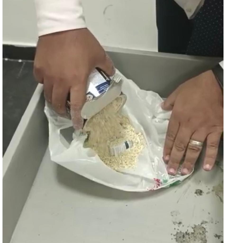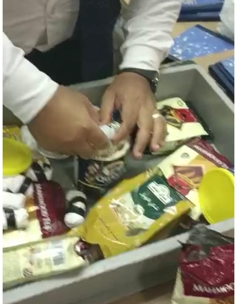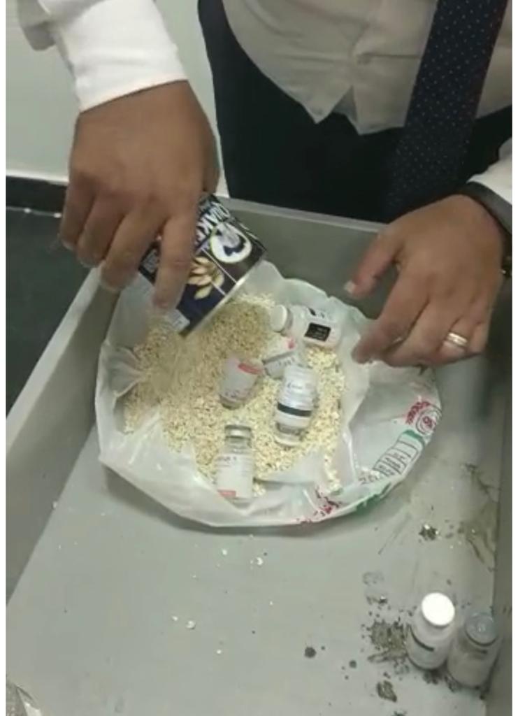وأضافت المصادر، أنه بتفتيش حقائب الراكب علي جهاز الفحص بالأشعة بواسطة كريم نادي مأمور الجمرك، والذي تلاحظ له وجود كثافات عضوية داخل الحقائب، قام أمير مطر مدير الحركة المشرف على صالة الوصول بمبني الركاب رقم ٣، بتكليف مصطفي بحر مأمور الجمرك، بتفتيش حقائب الراكب يدويا مما أسفر عن ضبط زجاجات دوائية مخبأة داخل أكياس وعبوات غذائية متنوعة محكمة الغلق.