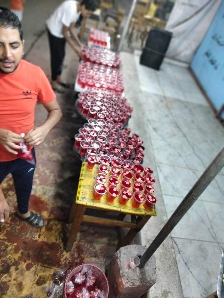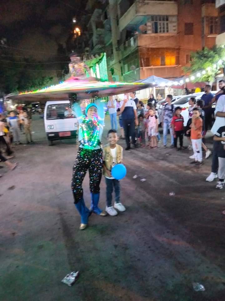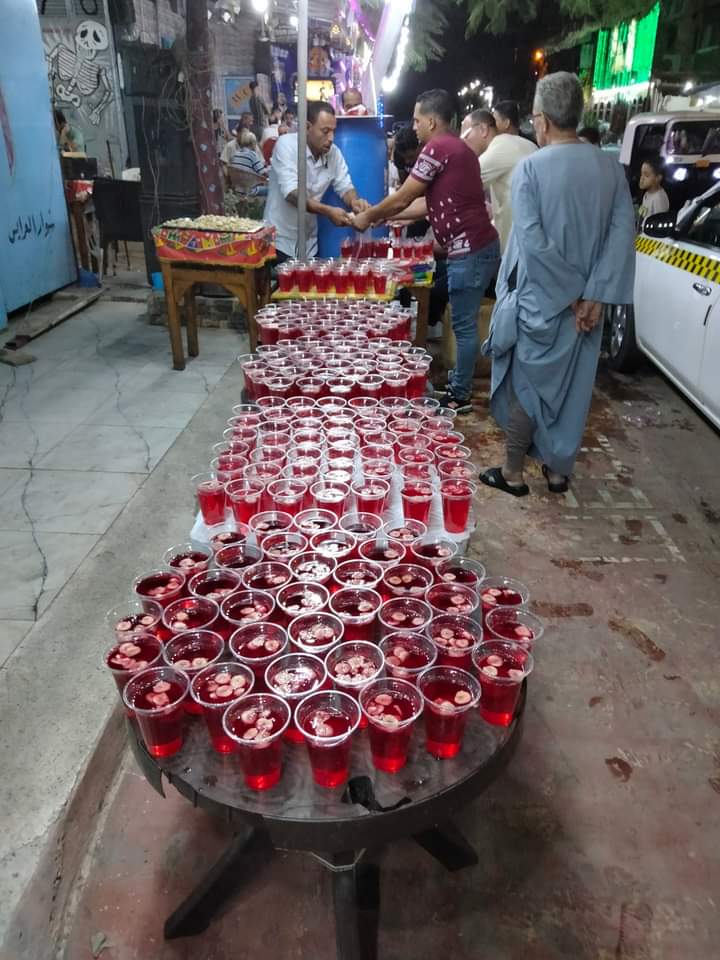واحتفل الاطفال والشباب عن طريق التنورة وتوزيع الشربات والحلويات على المارة وذلك لإحياء ذكرى المولد النبوي الشريف.