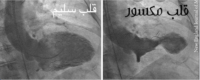وأضاف "عاصفة الأدرينالين.. الأدرينالين بيعمل اعتصار للقلب فبيحصل انقباض في قاعدة القلب وتمدد بالوني في قمة القلب زي ما هو باين في الصورة انكسار حقيقي للقلب، رغم إن قسطرة الشرايين التاجية ممكن تطلع سليمة"
