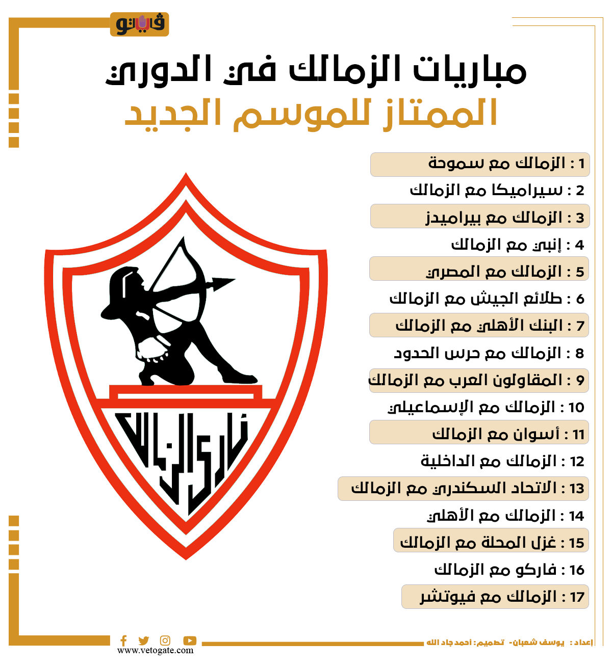 مباريات الزمالك في الدور الأول من الدوري الممتاز 2022 - 2023 | انفوجراف الأحد 09/أكتوبر/2022 - 04:02 م 10/9/2022 4:02:41 PM فريق الزمالك يوسف شعبان شارك طباعة 18 حجم الخط شارك طباعة الزمالك اخبار الزمالك الدوري الممتاز قرعة الدوري الممتاز سموحة