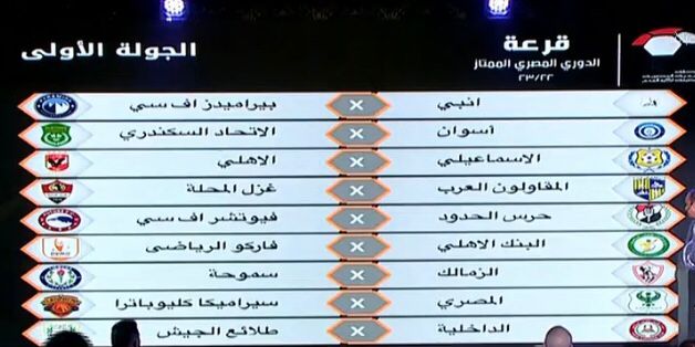 أسفرت قرعة مسابقة الدوري الممتاز التي تجري مراسمها حاليا بأحد فنادق القاهرة، عن مواجهة الداخلية مع نظيرة طلائع الجيش في الجولة الأولى من المسابقة، المقرر انطلاقها يوم 18 أكتوبر الجاري.