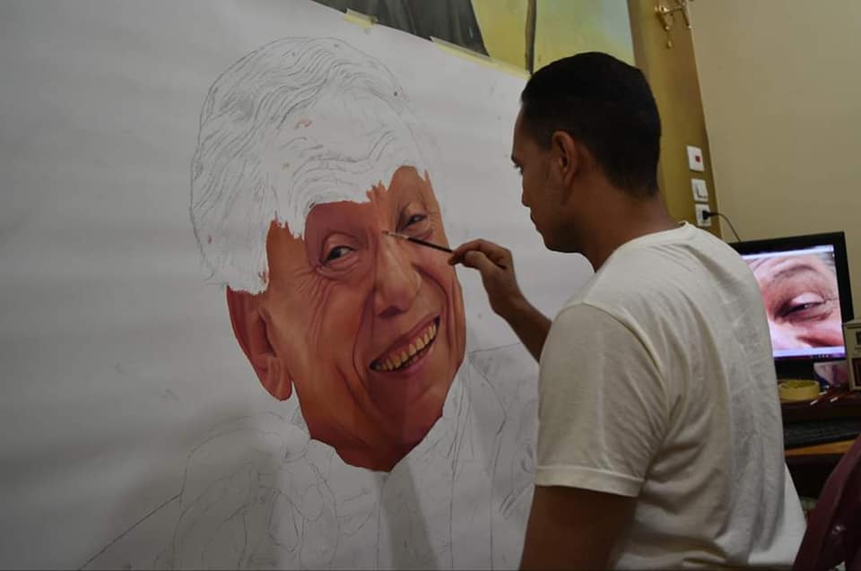 ونشر الزعيم، عددًا من الصور عبر صفحته الرسمية على موقع التواصل الاجتماعي "فيسبوك"، والتي تظهر مراحل رسم لوحة له، وسط تفاعل كبير من متابعيه.