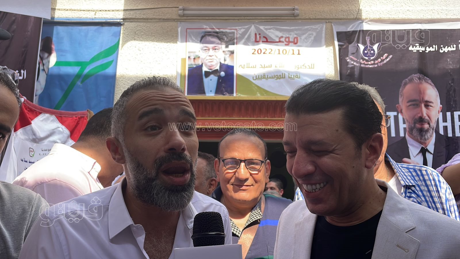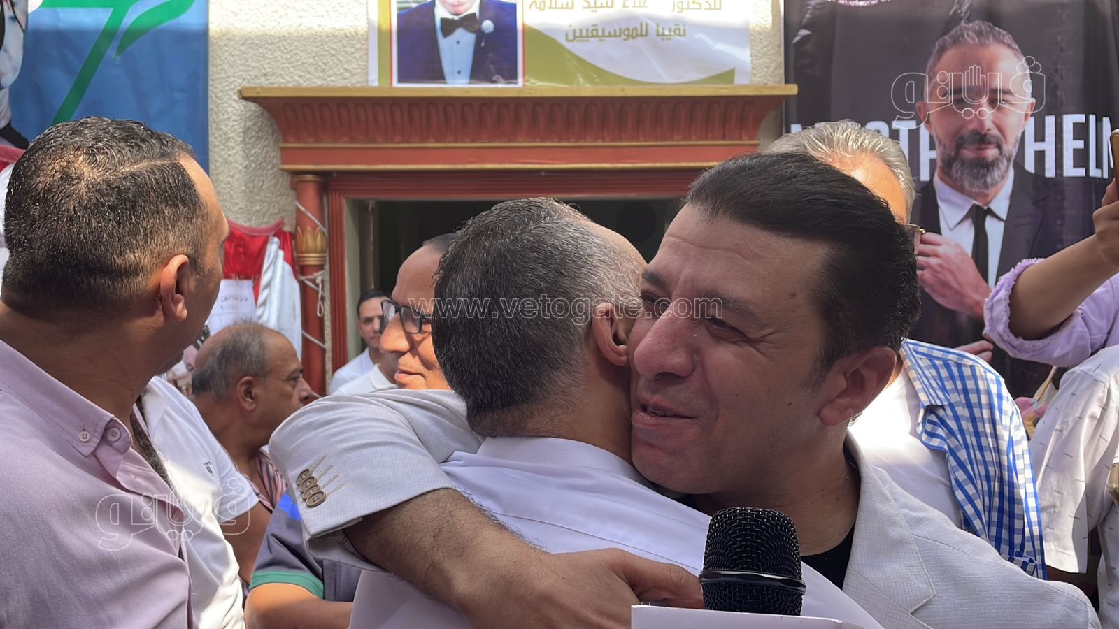 واحتضن مصطفي كامل المايسترو مصطفي حلمي امين بعضهم أمام الكاميرات، مؤكدين علي انهم يدعمون بعضهم البعض، وأنه لا يوجد صراع بينهما، وان الامر يأتي في إطار خدمة أعضاء نقابة الموسيقيين، مؤكدين “احنا إيد واحدة”.