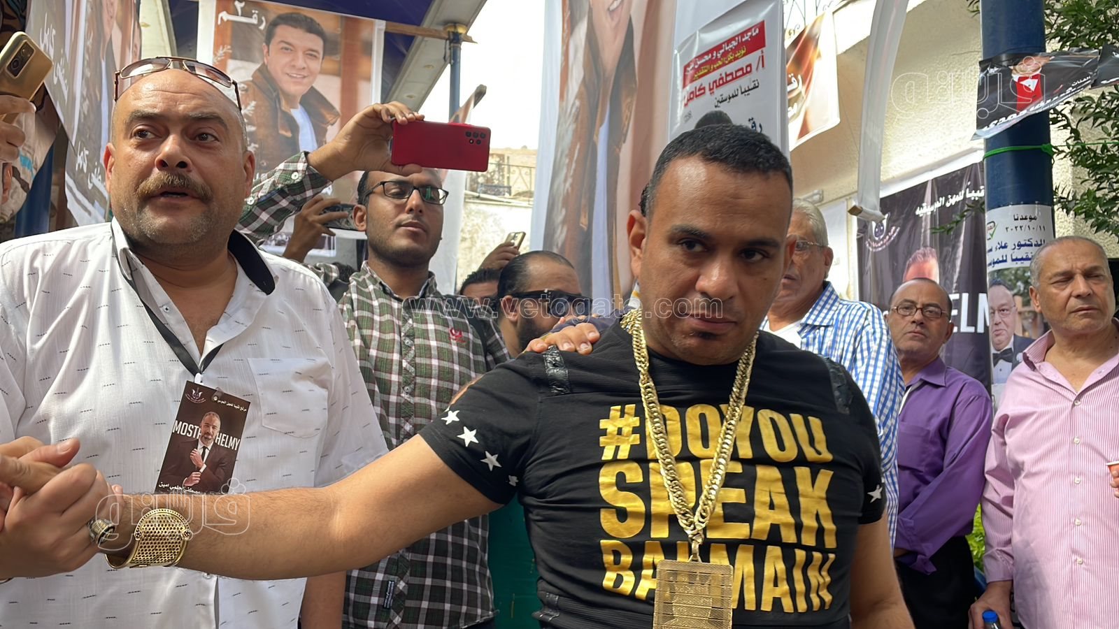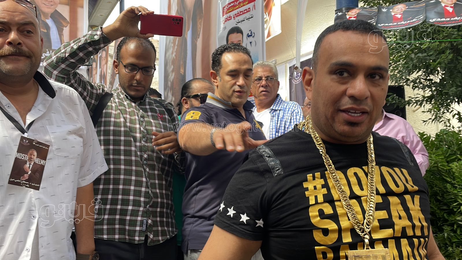 وظهر محمود الليثي بسلسلة ذهبية كبيرة أثناء الإدلاء بصوته، وسط تحية الحاضرين ومصافحتهم له فور وصوله.