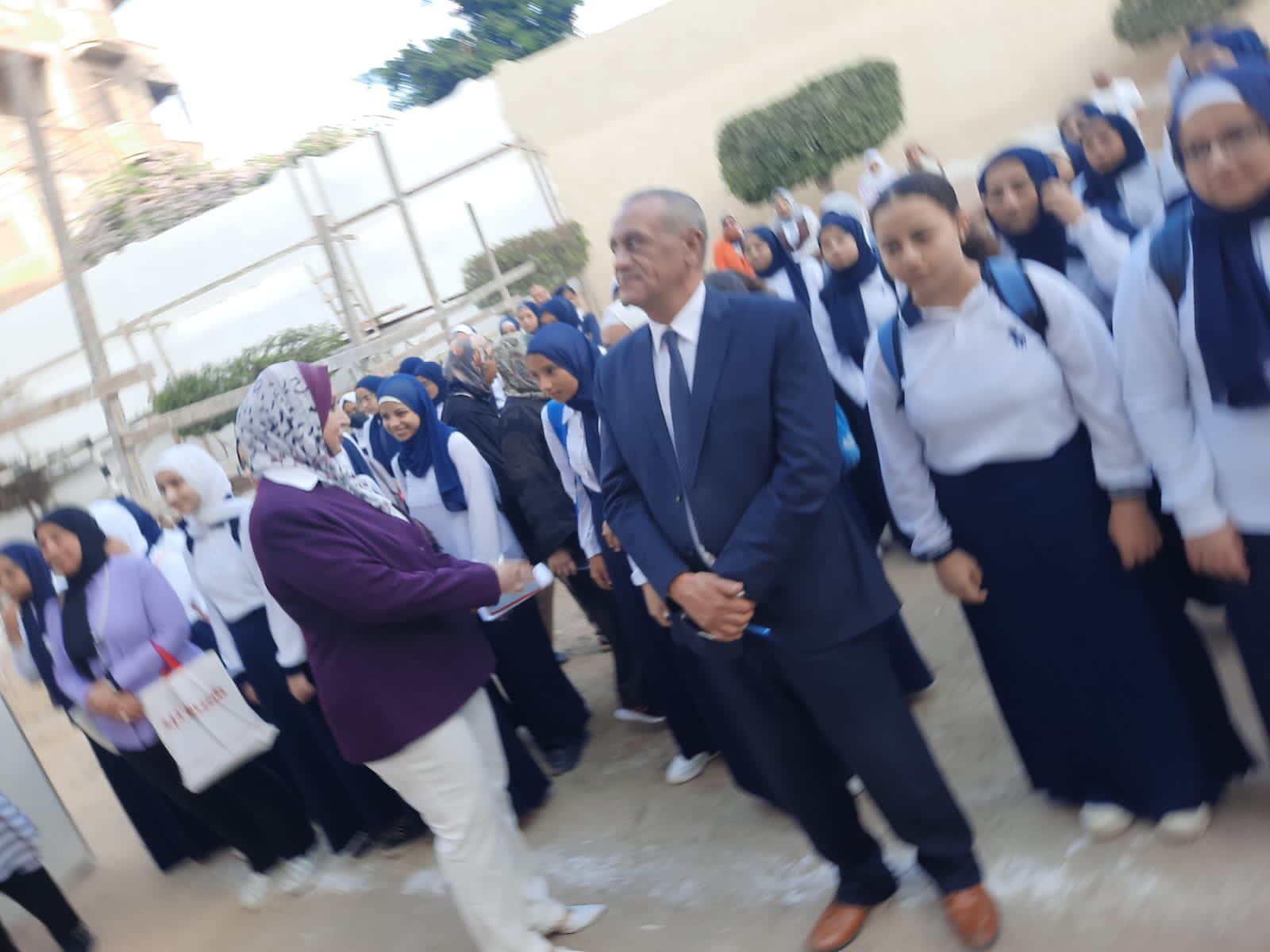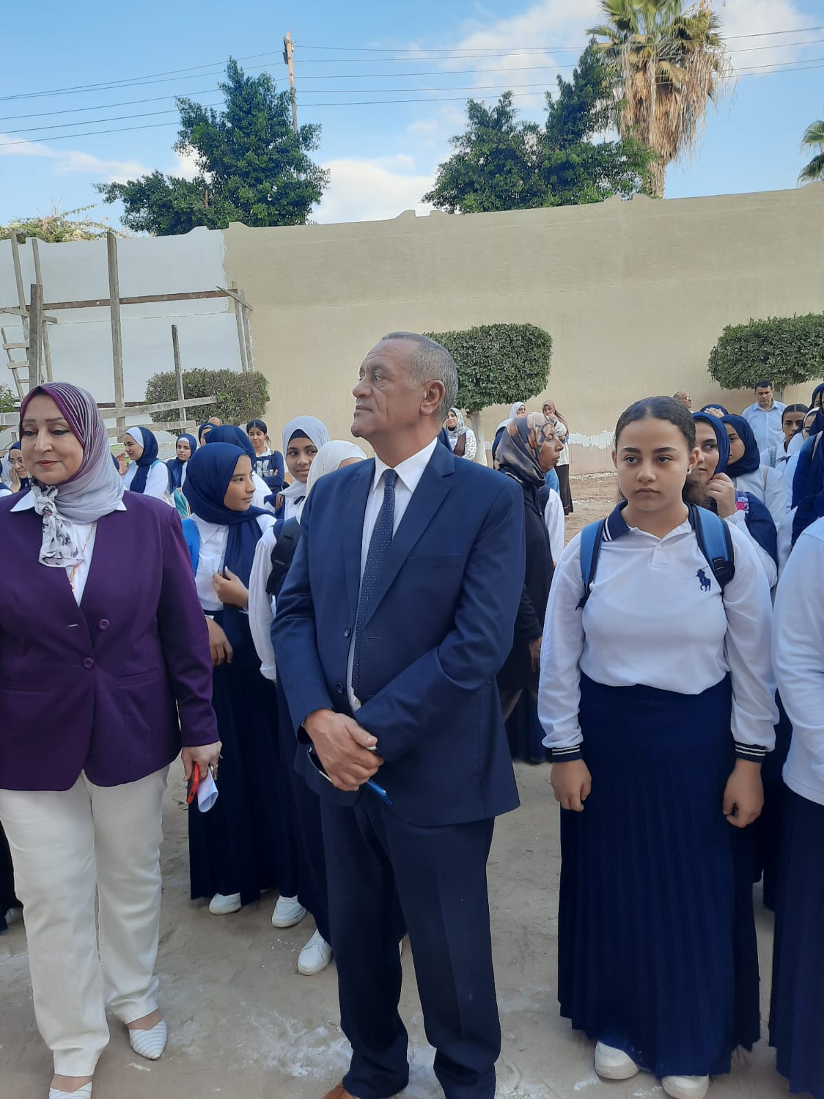 وشهد"وكيل المديرية " طابور الصباح بمدرسة المنصورة الثانوية الفنية بنات وتفقدا الفصول الدراسية لجميع الأقسام.
