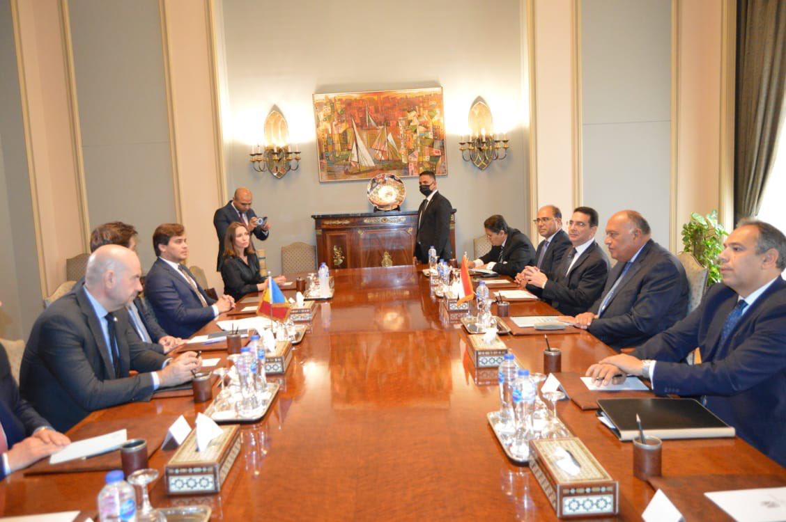 عقد سامح شكري وزير الخارجية، جلسة مشاورات سياسية موسعة مع نيكو بوبيسكو نائب رئيس الوزراء وزير الخارجية والاندماج الأوروبي بمولدوفا بمقر وزارة الخارجية فى القاهرة.