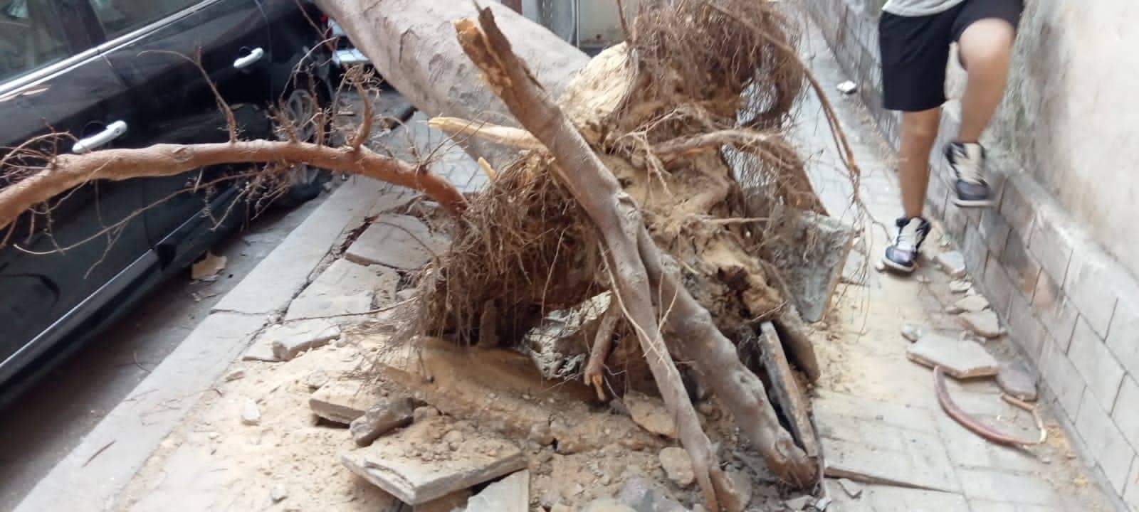 سقوط شجرة ضخمة بسبب سوء الأحوال الجوية في الإسكندرية | صور
