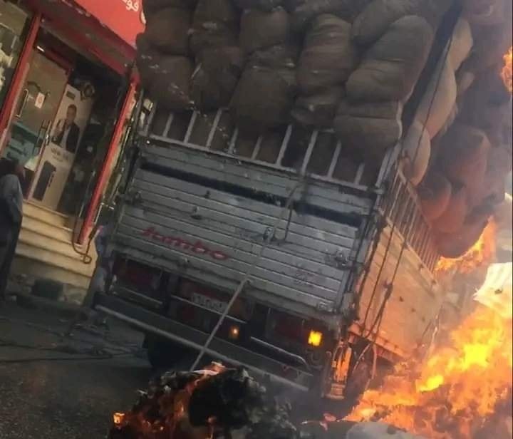 شب حريق منذ قليل فى سيارة نقل محملة بالقطن نتيجة اصطدام السيارة بالأسلاك الكهربائية الهوائية بشارع ابو القاسم بمركز أخميم دون خسائر فى الأرواح.