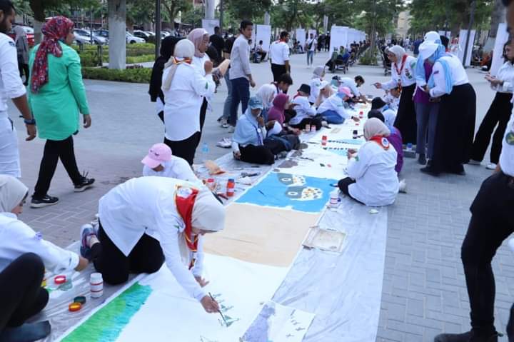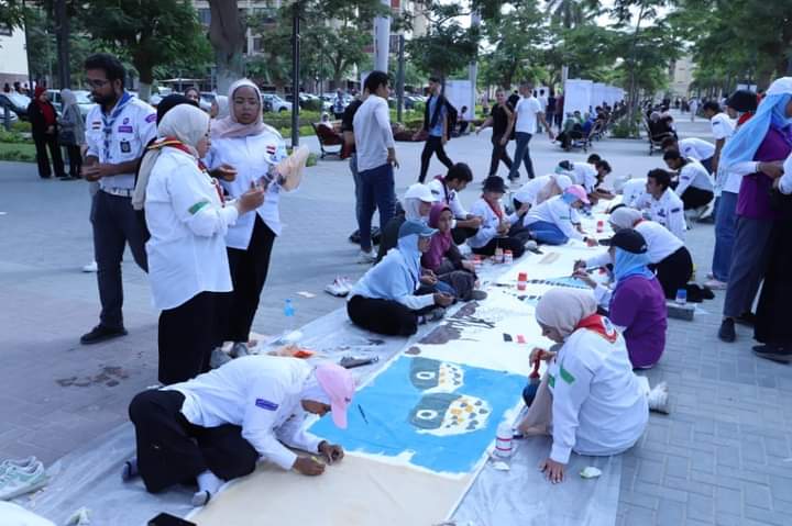 يذكر أن الجدارية بطول ٢٠ مترا يشارك في رسمها أكثر من ٧٠ طالبا وطالبة من منتخب جوالة جامعة عين شمس.