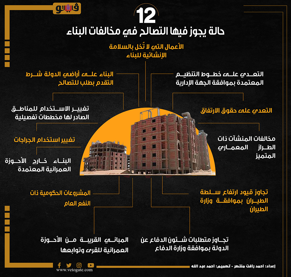 12 حالة يجوز فيها التصالح في مخالفات البناء | إنفوجراف الأربعاء 12/أكتوبر/2022 - 06:54 م 10/12/2022 6:54:46 PM مخالفات البناء أحمد رأفت منتصر شارك طباعة 18 حجم الخط شارك طباعة آخر أخبار قانون التصالح في مخالفات البناء على الأرض الزراعية آخر أخبار قانون التصالح في مخالفات البناء 2022 اليوم قانون التصالح الجديد 2022 قانون التصالح 2022