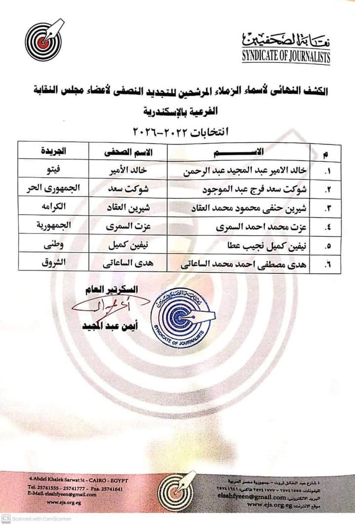 الأسماء النهائية لمرشحي نقابة الصحفيين بالإسكندرية