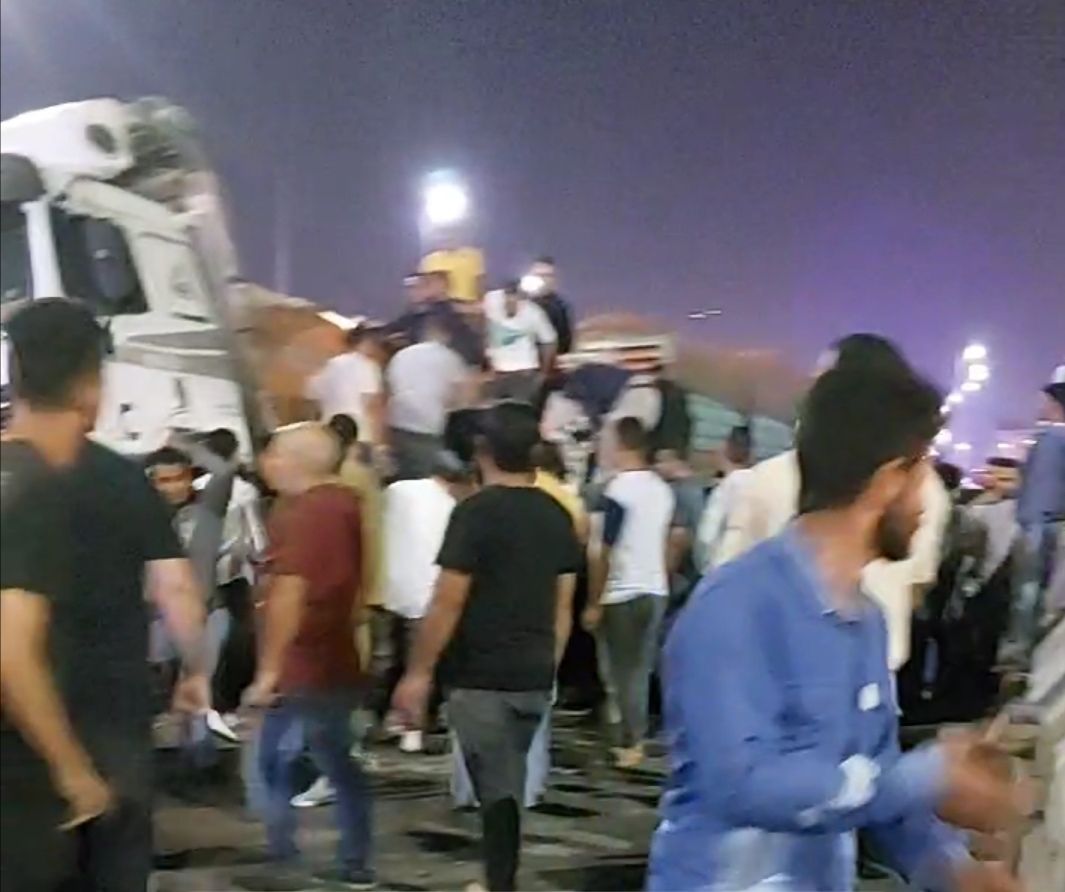 فيما تواجد رجال المرور والشرطة في موقع الحادث لبيان الملابسات وسؤال الشهود العيان وضبط سائق السيارة النقل المتسبب بالحادث.