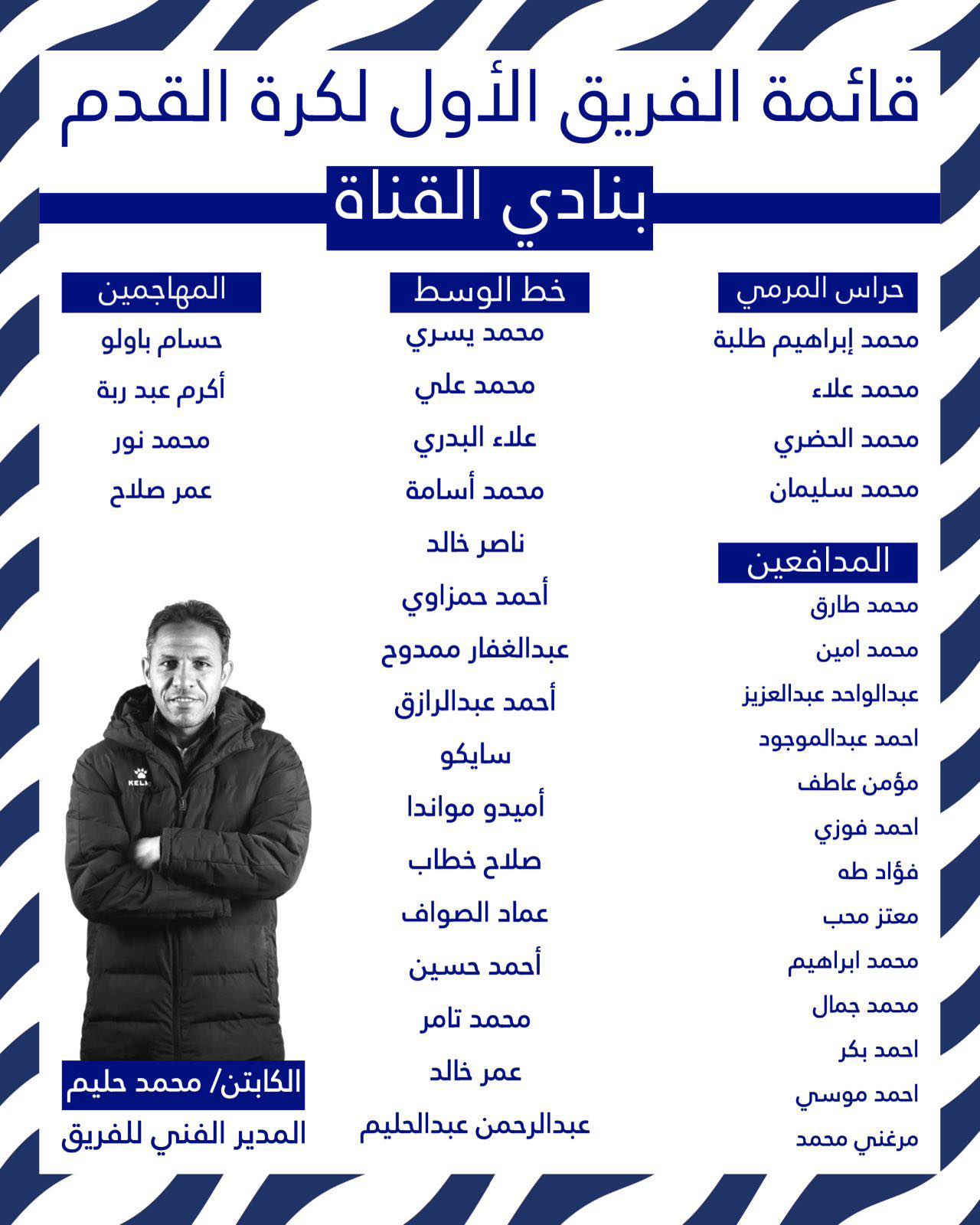 وتضم قائمة الفريق عشر صفقات جديدة أبرمها مجلس إدارة نادي القناة ضمن استعدادات الفريق للموسم الجديد وهم: