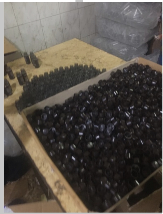 وعُثر بداخل المصنع على (13 ألف عبوة مستحضرات "منتج نهائى"- 1،400 طن مواد كيماوية – 640 كيلو جرام خامات – 100 كيلو جرام مكسبات رائحة "جميعها مجهولة المصدر وبدون مستندات تدل على مصدرها" – عدد من الماكينات والأدوات المستخدمة فى عملية التصنيع).