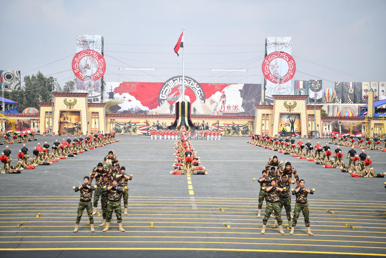 كما استعرضت عناصر من طلاب الكلية الحربية مهاراتهم البدنية والعضلية في فنون الاشتباك والدفاع عن النفس والقتال المتلاحم باستخدام السلاح وبدونه والتسلق والنزول من وإلى الارتفاعات المختلفة، بطرق غير نمطية.