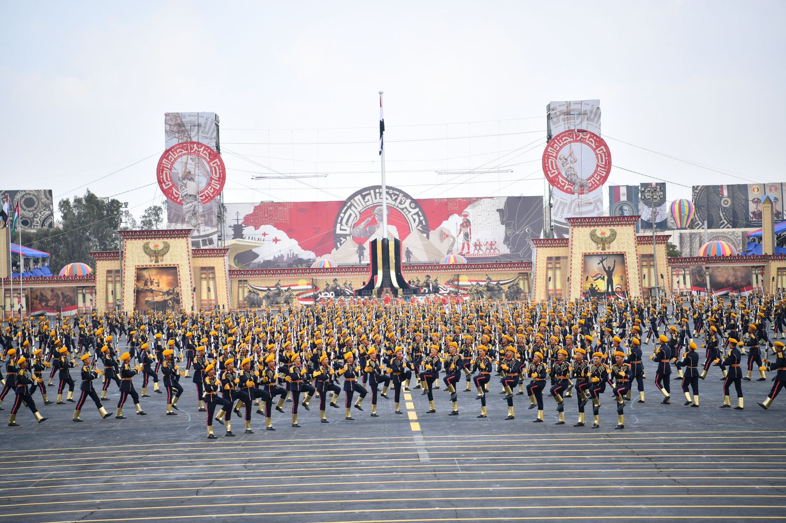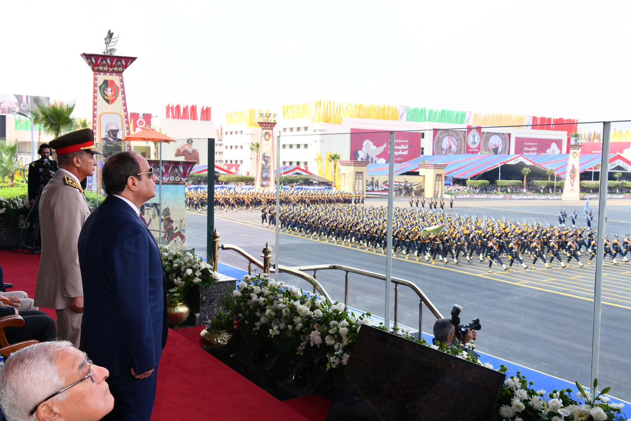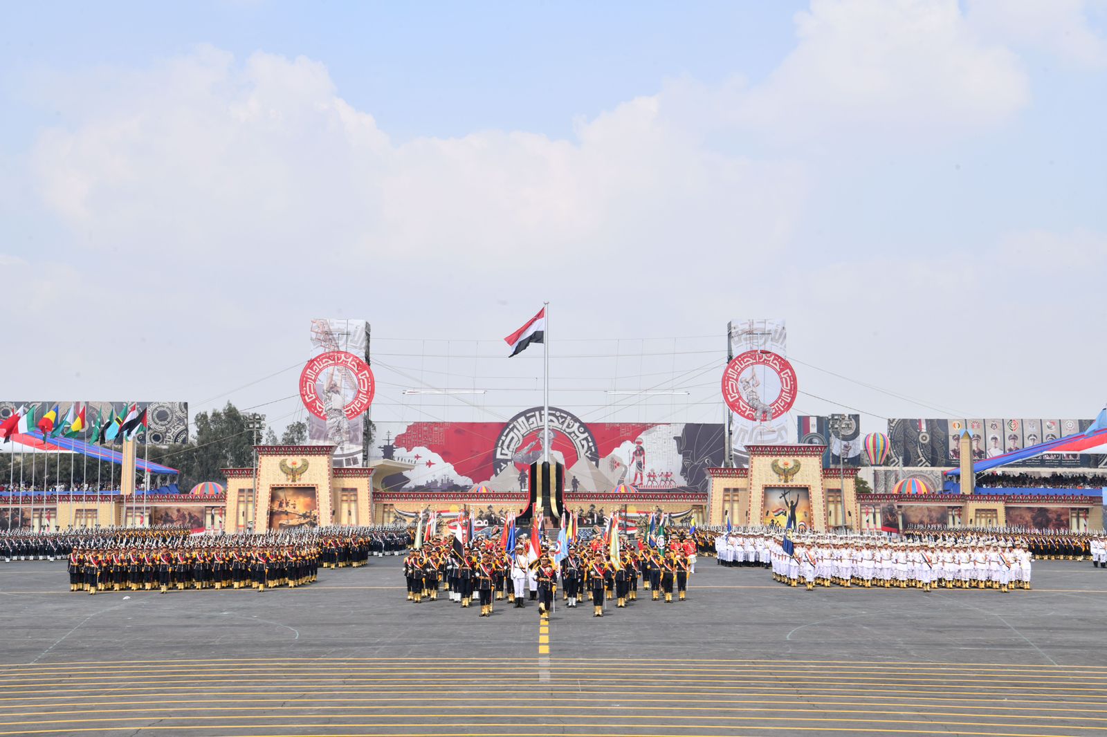 كما شاهد الرئيس عبد الفتاح السيسي طابور العرض العسكري الذي شاركت فيه مجموعات من طلاب الكلية الحربية من مختلف السنوات الدراسية ومجموعات الخريجين من الكلية البحرية والكلية الجوية وكلية الدفاع الجوى والكلية الفنية العسكرية والمعهد الفني للقوات المسلحة ومجموعة رمزية من طلبة كلية الشرطة في أداء متميز وانضباط عسكري راقٍ يتقدمهم حملة الأعلام