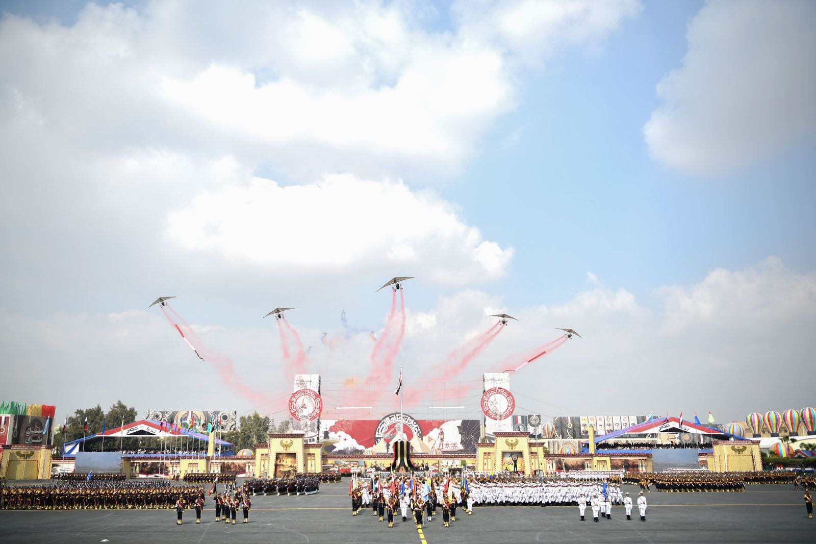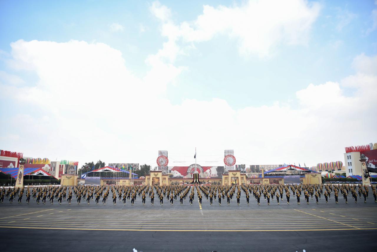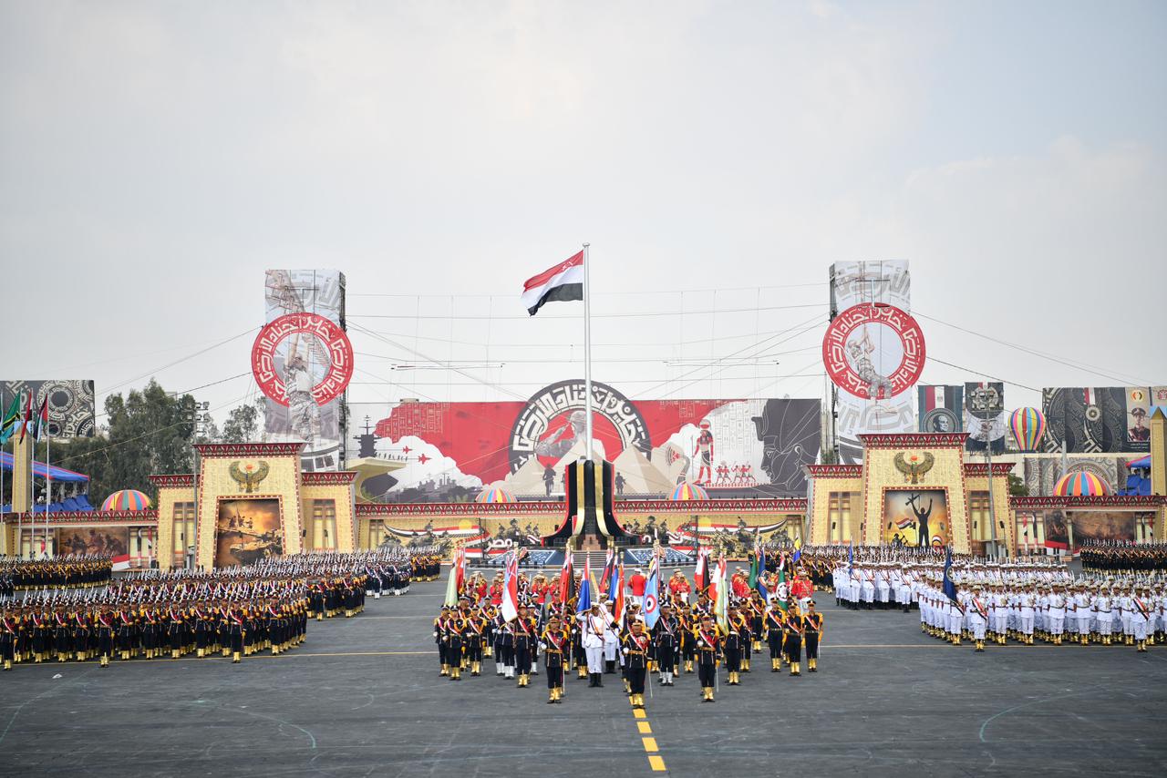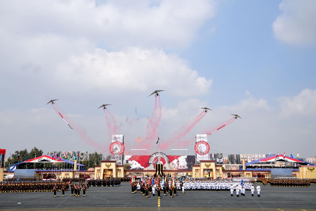 كما شاهد الرئيس عبد الفتاح السيسي طابور العرض العسكري الذي شاركت فيه مجموعات من طلاب الكلية الحربية من مختلف السنوات الدراسية ومجموعات الخريجين من الكلية البحرية والكلية الجوية وكلية الدفاع الجوى والكلية الفنية العسكرية والمعهد الفني للقوات المسلحة ومجموعة رمزية من طلبة كلية الشرطة في أداء متميز وانضباط عسكري راقٍ يتقدمهم حملة الأعلام