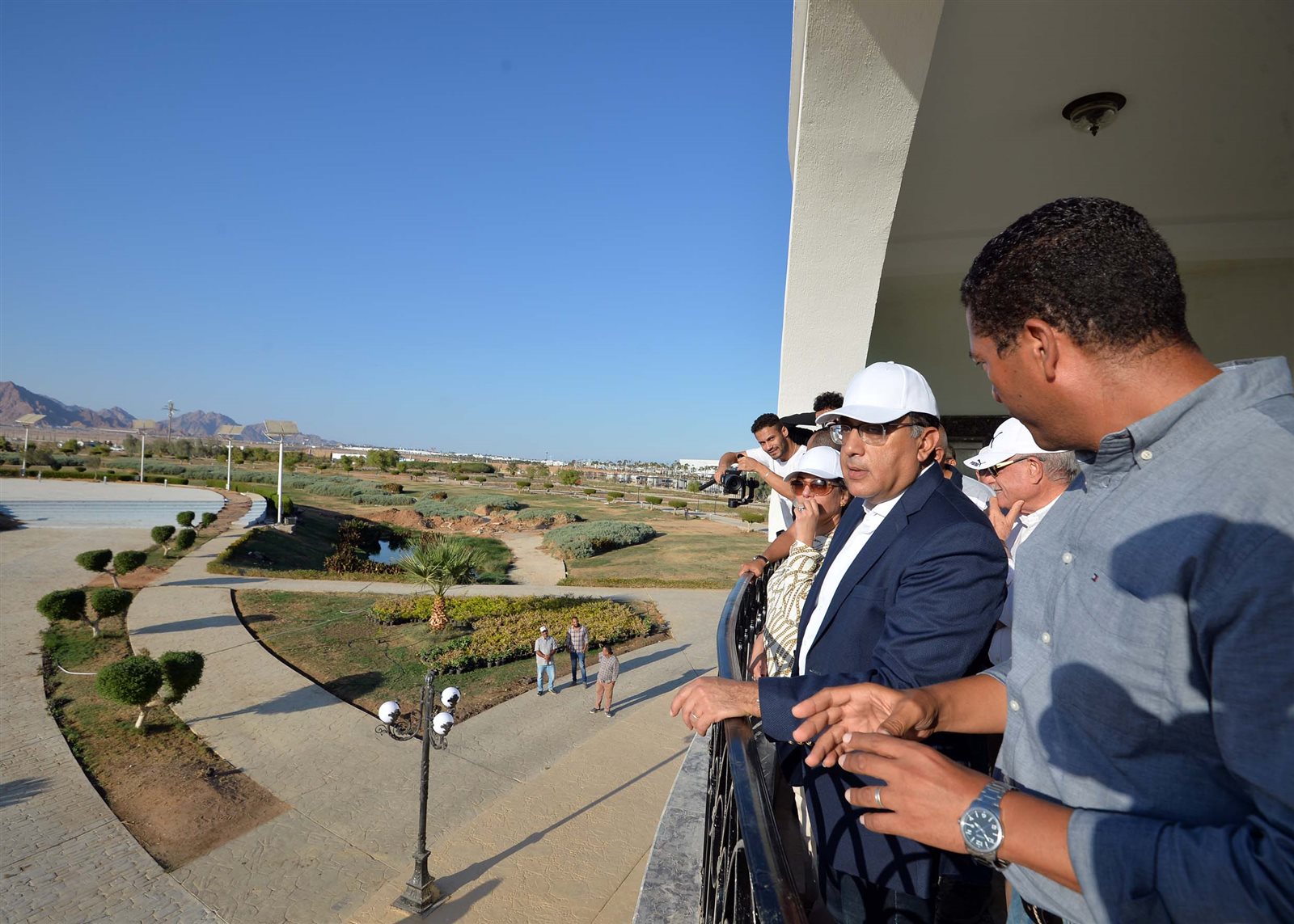 وتعرف رئيس الوزراء، خلال جولته بالمنطقة الخضراء على موقف مختلف المشروعات التي يتم تنفيذها فيها؛ مستمعًا إلى شرح من العميد إبراهيم علوي، مستشار وزيرة البيئة، الذي تناول ما يتم من أعمال لرفع كفاءة النافورة، والطرق المؤدية إلى المنطقة الخضراء، وكذا ما يتعلق برفع كفاءة الأماكن المخصصة للأطعمة والكافتيريات، ورفع كفاءة المسرح والزراعات الموجودة بحديقة السلام، فضلًا عما يتم من أعمال لربط المنطقة بقاعة المؤتمرات، والقرية البدوية، ومنطقة الخيام، ومركز معلومات التنوع البيولوجي ومتحف السلام والبيئة، وذلك من أجل توفير خدمات متنوعة للزوار تضمن تجربة بيئية تمزج بين الاستفادة العلمية والعملية والاستمتاع بالطبيعة، وفى هذا الصدد شدد رئيس الوزراء على أهمية الالتزام بالتوقيتات الزمنية المحددة للانتهاء من مختلف الأعمال، وضرورة جودة التنفيذ، وخاصة التشطيبات النهائية، بما يعكس حجم ما يتم من انجاز في تلك المشروعات، وينقلها لزائريها فى أبهي صورة.