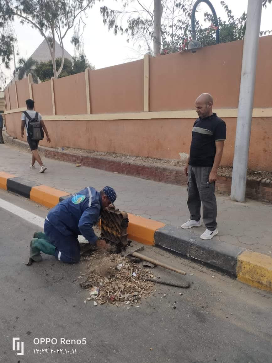 كما قام مسؤؤلي اداره المرافق باعمال تطهير بالوعات الامطار بشارع اللبيني هرم وتطهير بلاعات الامطار بطريق الفيوم امام مدخل طريق الواحات بالاضافه الي تركيب الطلمبات وتوصيل الكهرباء بنفق الهرم بشارع اللبيني وجاري استكمال اعمال التطهير بنطاق الحي...
