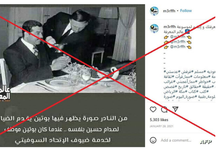وأظهرت بالأسود والأبيض، رجلًا ادعى الناشرون أنه الرئيس الروسي وهو يقدِّم الضيافة للرئيس العراقي السابق صدام حسين أثناء زيارة إلى الاتحاد السوفيتي، وعلى ما يبدو أنها كانت على مائدة طعام.
