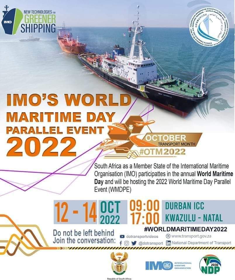 شاركت هيئة ميناء دمياط فى فاعليات الاحتفال الموازى لليوم العالمي للملاحة البحرية 2022 (world maritime day parallel event 2022 ) والذى استضافته مدينة دربن بجنوب إفريقيا خلال الفترة من 12_14 أكتوبر الحالى، تلبية لدعوة من الأمين العام للمنظمة البحرية الدولية (IMO) ووزارة النقل بجنوب إفريقيا.