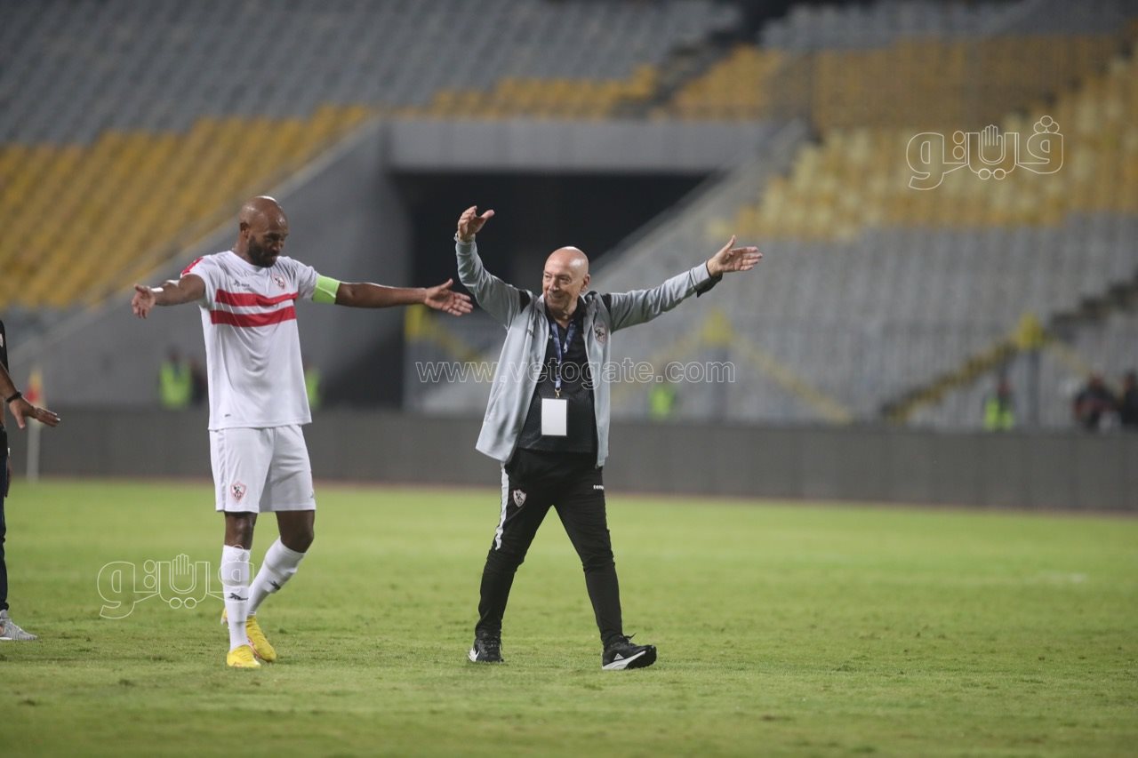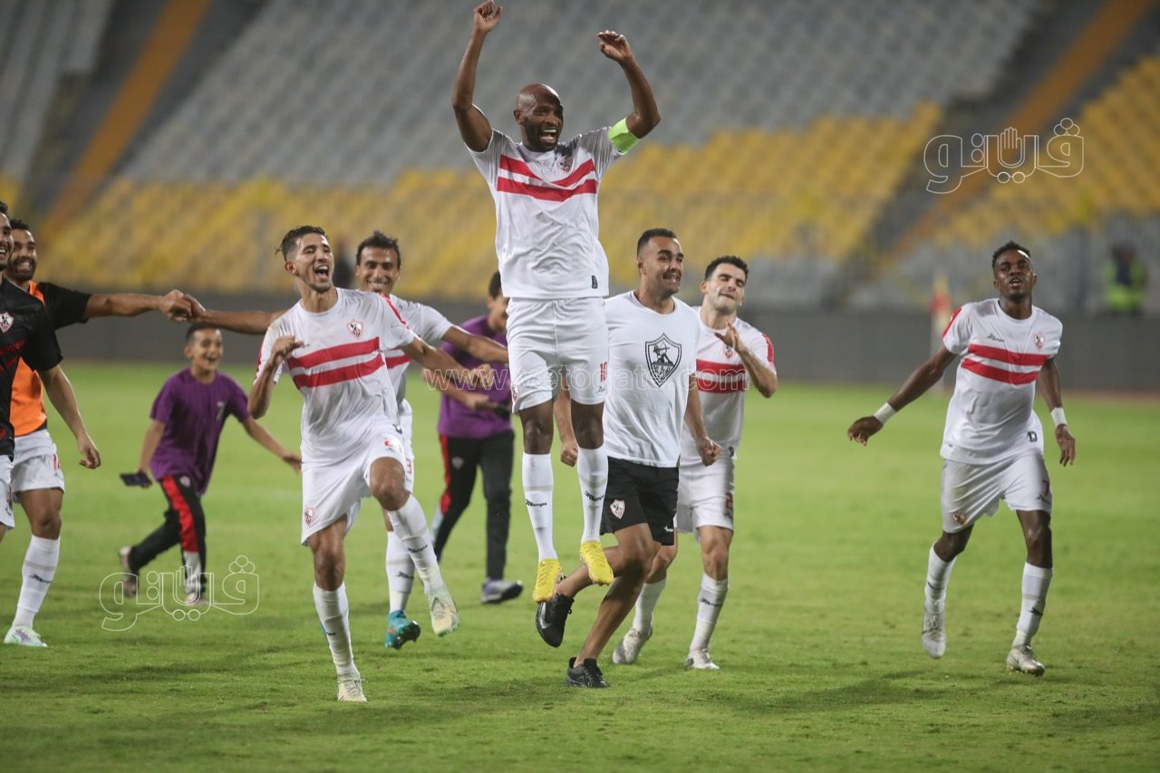 لاعبو الزمالك يحتفلون مع الجماهير بالفوز على فلامبو| صور