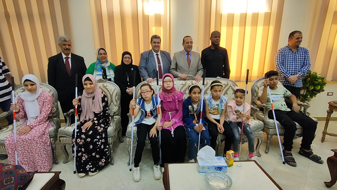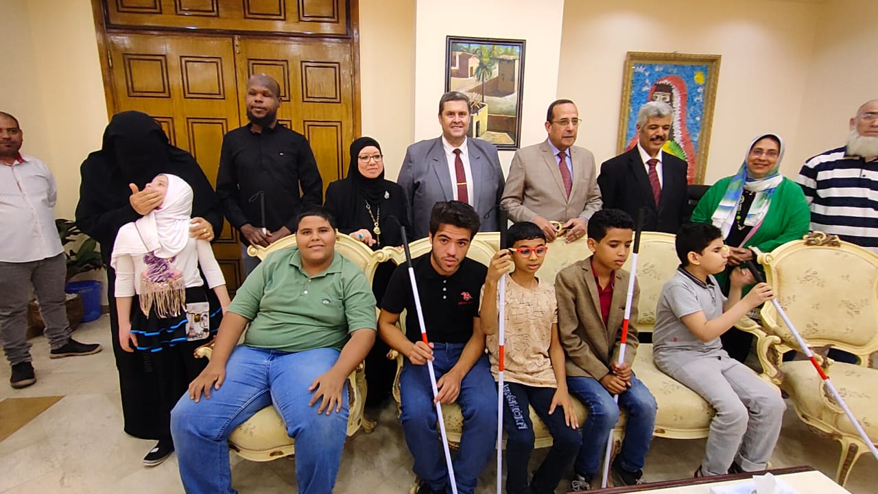 جاء ذلك خلال لقائه بأصحاب الهمم من المكفوفين وضعاف البصر بمناسبه اليوم العالمى للعصا البيضاء بحضور حمزة رضوان وكيل وزارة التربية والتعليم، على غيط مدير عام التضامن الاجتماعى الدكتورة عزة كمال مدير ادارة التربية الخاصة، الدكتور عبد الكريم الشاعر راعى جماعة ذوى البصيرة من المكفوفين وضغاف البصر، خالد شرهان رئيس مجموعة ذوى البصيرة، والمهندسة ليلى مرتجى وكيل وزارة التربية والتعليم السابق.