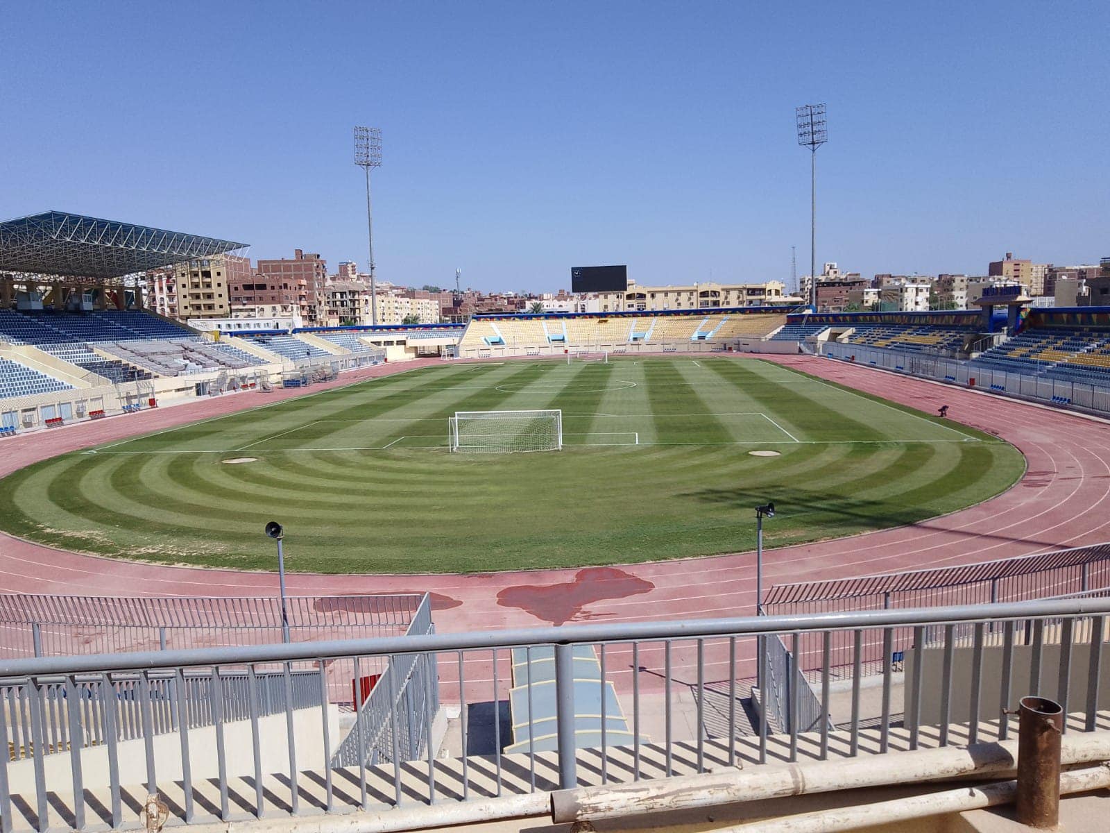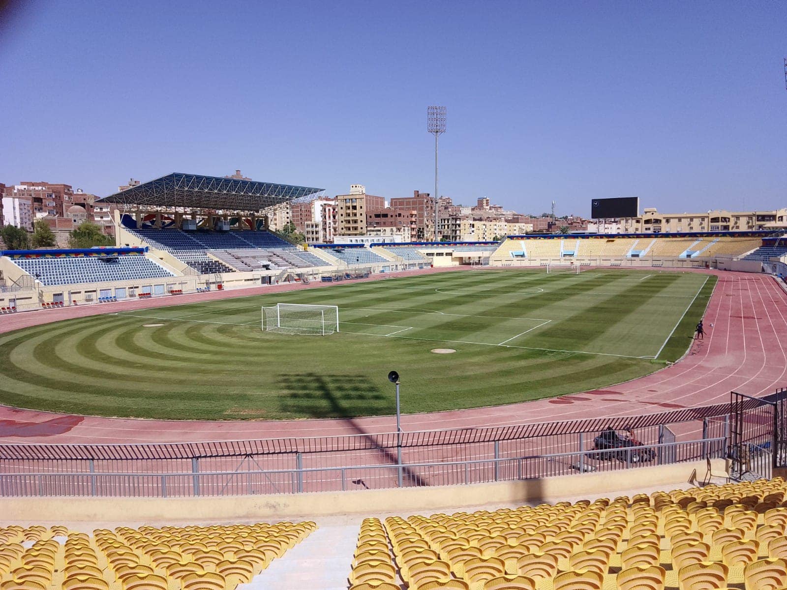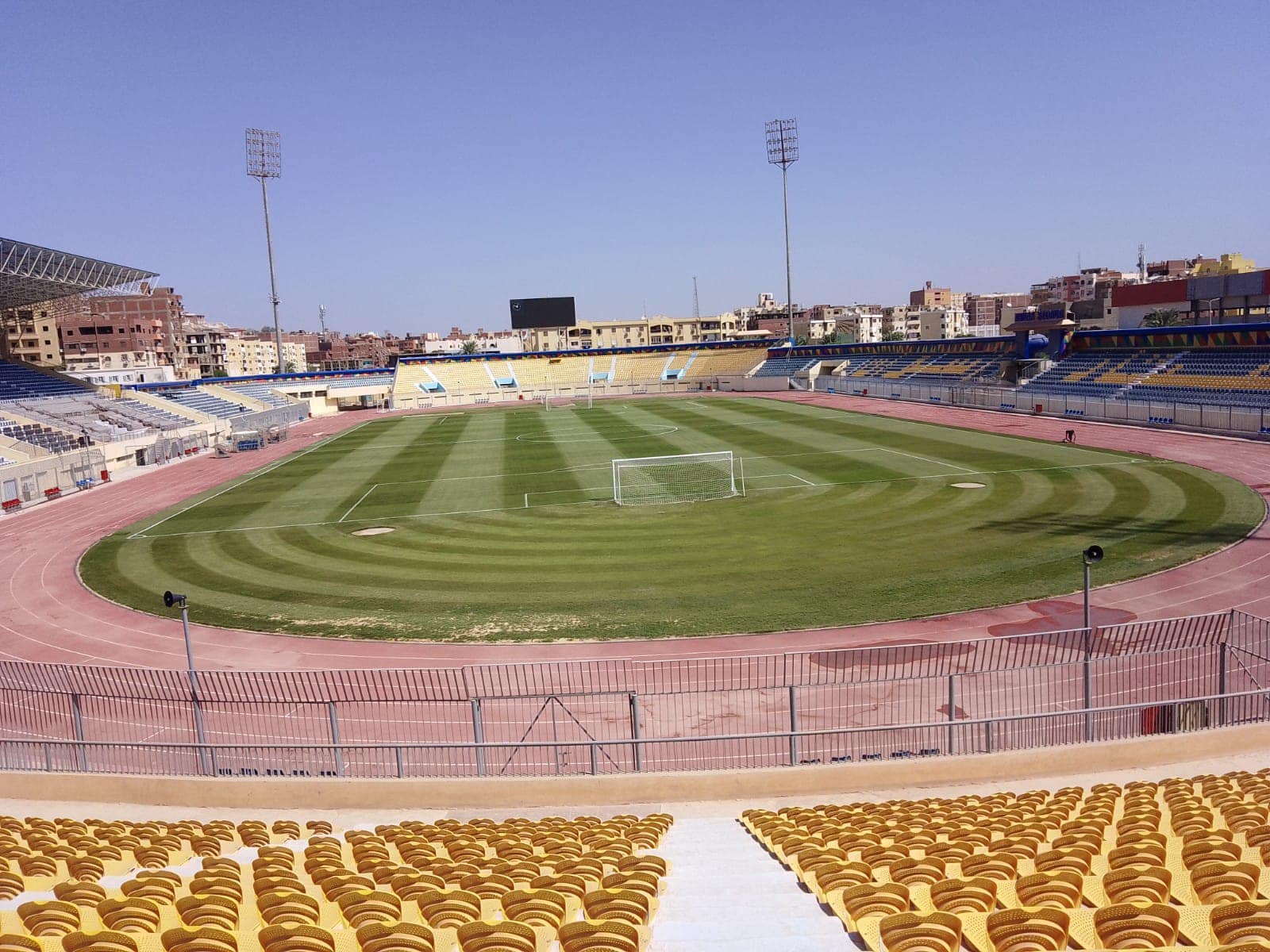 ظهر استاد أسوان بشكل مميز قبل أيام من انطلاق مسابقة الدوري الممتاز واحتضان مباريات تماسيح النيل في الدوري.
